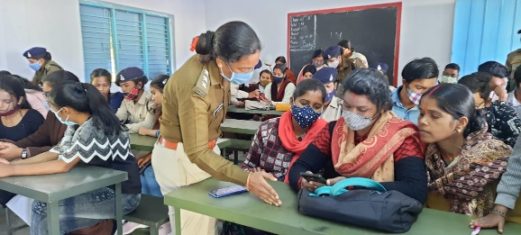 डीएसपी नंदनी पैंकरा ने छात्राओं को बताया गया कि वे महिला सुरक्षा एप से तुरंत पुलिस की सहायता प्राप्त कर सकते हैं।