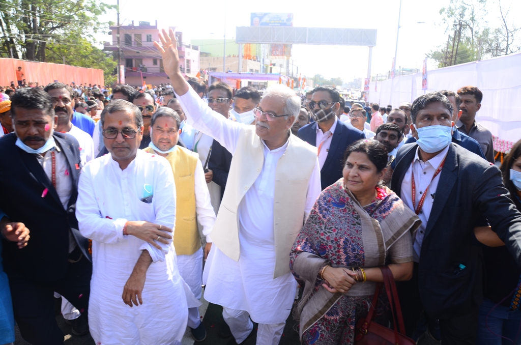 बिलासपुर-[जनहित न्यूज़] मुख्यमंत्री भूपेश बघेल ने आज बिलासपुर को 107.49 करोड़ रूपए की लागत से नवनिर्मित तिफरा फ्लाईओव्हर सहित व्यापार विहार स्मार्ट रोड और प्लेनेटोरियम की सौगात दी। श्री बघेल ने बिलासपुर के लाल बहादुर शास्त्री मैदान में आयोजित कार्यक्रम में बिलासपुर शहर और बिलासपुर जिले के लिए लगभग 353 करोड़ 56 लाख रूपए की लागत के 97 विकास कार्यों का भूमिपूजन और लोकार्पण किया। मुख्यमंत्री ने इन कार्यों में से 277 करोड़ 31 लाख रूपए की लागत के 62 कार्यों का लोकार्पण और 76 करोड़ 25 लाख रूपए की लागत के 35 कार्यों का भूमिपूजन किया।