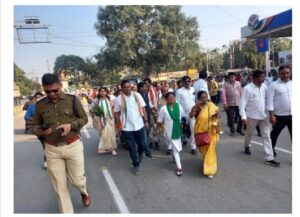 मंगलवार का दिन बिलासपुर की राजनीति गोबर, गौमूत्र और गंगाजल के नाम रहा। कांग्रेस ने भानुप्रतापुर उप चुनाव में एक दुष्कर्म के आरोपी को टिकट दिए जाने का मुद्दा मंगलवार को जोरशोर से उठाया। जिला कांग्रेस कमेटी के अध्यक्ष विजय केशरवानी के नेतृत्व में भाजपा प्रदेश अध्यक्ष के निवास के सामने तगड़ा प्रदर्शन किया। सबसे पहले श्री केसरवानी के नेतृत्व में कांग्रेस भवन से पदयात्रा निकाली गई। इस दौरान कांग्रेस कार्यकर्ता अपने हाथ में गंगाजल, गौमूत्र और गोबर लेकर चल रहे थे और भाजपा शर्म करो…शर्म करो… के नारे लगा रहे थे। कांग्रेस के पदाधिकारी शंख ध्वनि के साथ सबसे पहले नेहरू चौक पहुंचे और जहां पर केंद्रीय मंत्री स्मृति ईरानी खड़े होकर छत्तीसगढ़ में महिलाओं की सुरक्षा पर सवाल खड़ा किए थे उस स्थान का गोबर, गौमूत्र और गंगाजल से शुद्धिकरण किया गया। इसके बाद भाजपा को शुद्धिकरण करने के लिए अरुण साव को गोबर, गौमूत्र और गंगाजल भेंट करने के लिए आगे बढ़े।