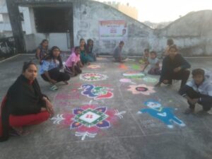 रंगोली कला का शानदार प्रतिभा दिखाकर महिलाएं तथा बच्चों ने सभी का मनमोह लिया