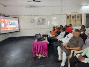 श्री अग्रवाल पश्चिम मंडल वार्ड नंबर 1 पाटीदार भवन में आयोजित मन की बात कार्यक्रम की 100 कड़ी को सुनने के लिए बूथकार्यकर्ताओं एवं पदाधिकारियों के साथ शामिल हुए।