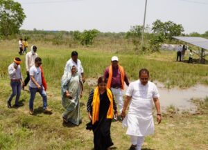 तखतपुर के नर्मदा खत्री में गौठान निरीक्षण के दौरान किसान ने साक्ष्य प्रस्तुत कर पूर्व मंत्री को बताया कि सरपंच एवं विधायक ने मिलकर 13 एकड़ की सरकारी जमीन को तखतपुर के एक रसूख दार भू माफिया को बेच दिया गया और किसान की जमीन को सरकारी जमीन घोषित कर उसमे गौठान बना दिया।