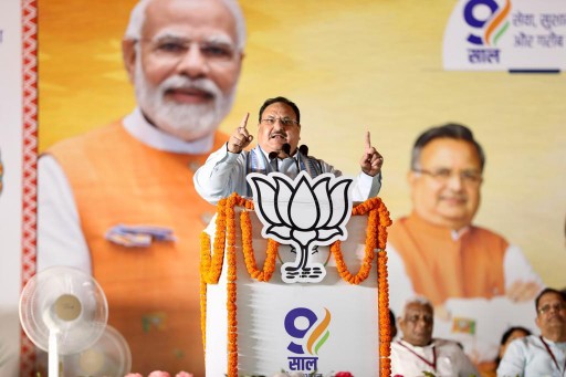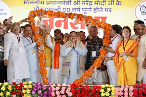 श्री नड्डा ने कहा कि प्रधानमंत्री गरीब कल्याण योजना में जनता को मुफ्त चावल दिया। भारत की गरीबी 22 फीसदी से घटकर 10 फीसदी से भी कम रह गई है। प्रधानमंत्री आवास योजना में 12 करोड मकान बनाए। 1993 में 1 पंचायत में साल में इंदिरा आवास योजना में एक मकान बनता था। हमारी माताएं बहनें नित्यकर्म के लिए बाहर जाया करती थी। 12 करोड़ बहनों को सम्मान दिया। छत्तीसगढ़ में भी यही स्थिति थी। छत्तीसगढ़ में 35 लाख महिलाओं को सम्मान दिया। गंभीर बीमारियों के इलाज के लिए प्रधानमंत्री नरेंद्र मोदी ने गरीबों को 5 लाख तक के इलाज की आयुष्मान योजना देश को दी। साढ़े 36 लाख परिवार छत्तीसगढ़ के हैं जिन्हें आयुष्मान योजना का लाभ मिलता है। यह सब कम आय वर्ग वाले, रोज कमाने खाने वाले गरीब लोग हैं जिन्हें मोदी जी ने बेहतर उपचार उपलब्ध कराया है। महिलाएं तीन किलोमीटर पानी लेने के लिए जाया करती थीं। मोदी जी ने घर घर में पानी पहुंचा दिया है। किसानों को सम्मान निधि दी जा रही है। 11 करोड़ से अधिक किसानों के खाते में सम्मान निधि पहुंच जाती है। कोई भी बिचोलिया नहीं। सीधे किसान के खाते में पैसा जाता है।