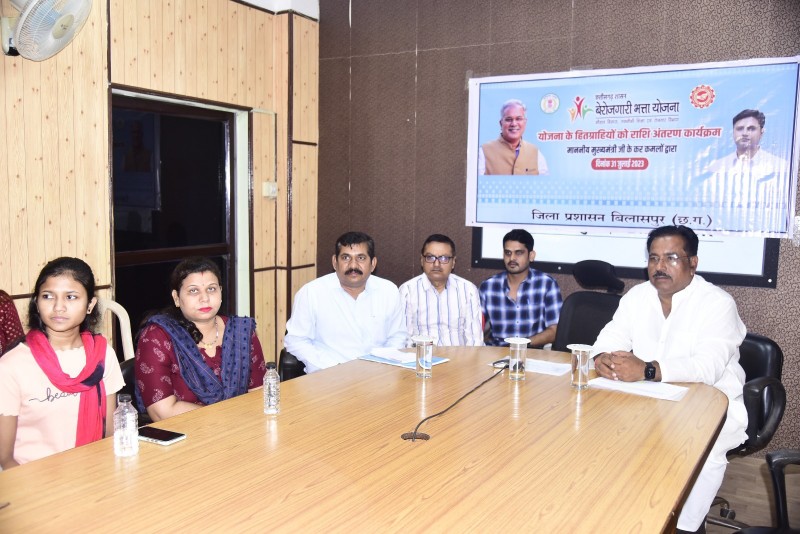 बिलासपुर-[जनहित न्यूज़] मुख्यमंत्री भूपेश बघेल ने रायपुर स्थित अपने निवास कार्यालय से आज बटन दबाकर पूरे राज्य के बेरोजगारी भत्ता योजना के हितग्राहियों के खाते में चौथी किश्त की राशि अंतरित की। जिसमें बिलासपुर जिले के बेरोजगारी भत्ता योजना के तहत कुल 1 करोड़ 82 लाख 85 हजार रूपए की राशि शामिल है। कार्यक्रम में जिला कार्यालय बिलासपुर से अरपा बेसिन विकास प्राधिकरण के उपाध्यक्ष अभय नारायण राय, जिला पंचायत के सीईओ अजय अग्रवाल सहित अन्य अधिकारी और युवा वर्चुअली शामिल हुए। मुख्यमंत्री भूपेश बघेल ने इस अवसर पर बेरोजगारी भत्ता योजना के राज्य के विभिन्न जिलों के हितग्राहियों से चर्चा की और योजना के बारे में फीडबैक लिया। कार्यक्रम में मुख्यमंत्री ने बेरोजगारी भत्ता योजना के हितग्राहियों को रोजगार के लिए ऑफर लेटर भी प्रदान किया। जिला रोजगार एवं स्वरोजगार मार्गदर्शन केंद्र के उप संचालक ने बताया कि बिलासपुर जिले में बेरोजगारी भत्ता योजना के तहत अब तक कुल 11 हजार 567 आवेदन प्राप्त हो चुके हैं, जिसमें से कुल 7314 आवेदन स्वीकृत हुए हैं।
