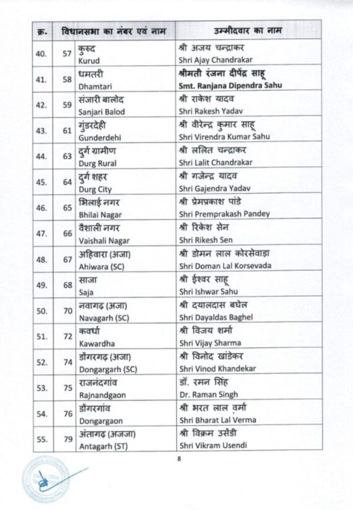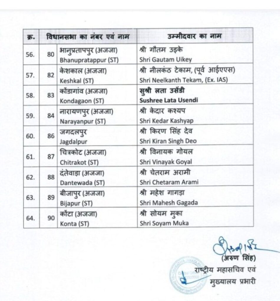 छत्तीसगढ़ भाजपा की दूसरी सूची जारी अब सिर्फ 5 बाकी