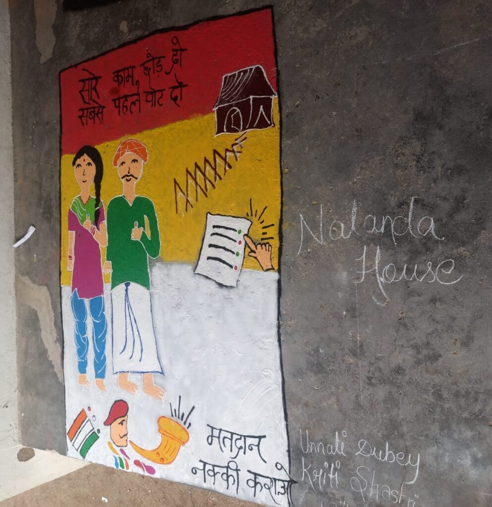 साथ ही हमारे प्रदेश में विधानसभा चुनाव का बिगुल गया है,उसपर भी फ़ोकस करते हुए शतप्रतिशत मतदान करने हेतु जागरूक रंगोली के माध्यम से दिया और अलग-अलग संदेश देते हुए एक पूरा अध्याय ही स्कूल प्रांगड़ में उकेर दिया।