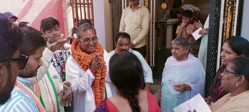 बिलासपुर-{जनहित न्यूज़} बिलासपुर कांग्रेस उम्मीदवार शैलेश पांडे को मिल रहा जनता का आशीर्वाद, उन्होंने कहा भाजपा मोदी का चेहरा लेकर वोट मांग रही, 15 साल क्या किया नहीं बता पा रहे, बिलासपुर विधायक शैलेश पांडे ने आज गोवर्धन पूजा गौरीगौरा पूजा, तथा काली माता की पूजा अर्चना कर में बिलासपुर विधानसभा के नागरिकों को शुभकामनाएं देते हुए शहर में सुख समृद्धि की कामना की और कहा कि सभी के घर आंगन उजियारी से भरा रहे।
