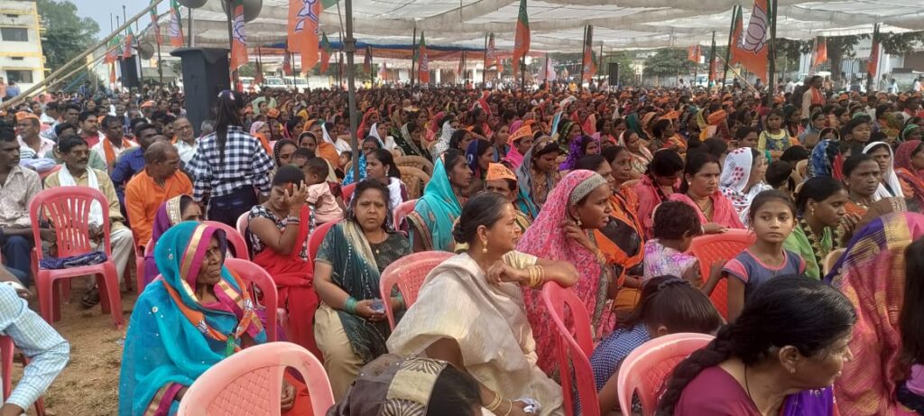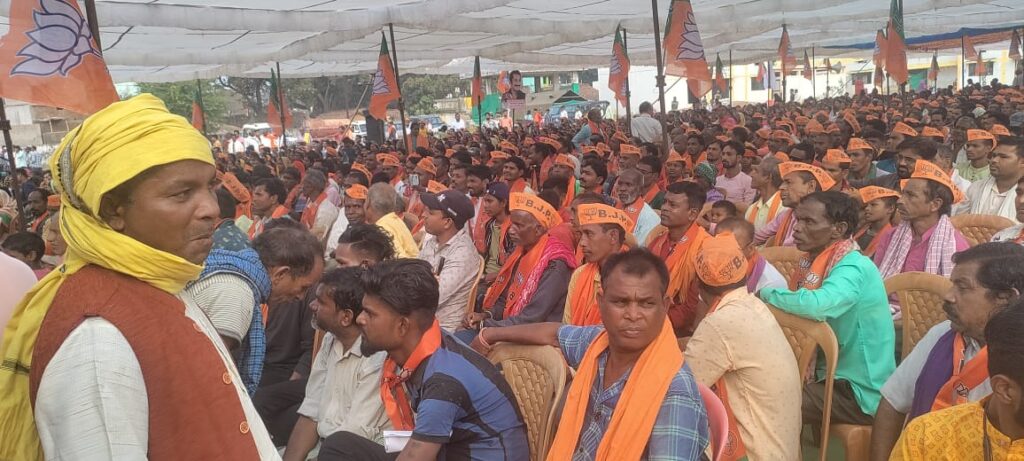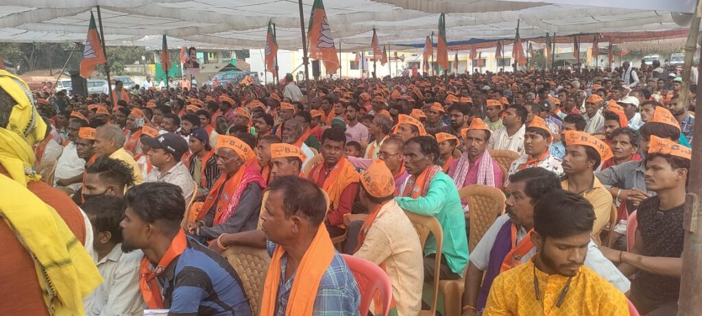 भारतीय जनता पार्टी के चुनावी महासभा में डीकेपी स्कूल मैदान कोटा में कई हजारों की संख्या में महिला,पुरुष,युवा कार्यकर्ता दोपहर 1 बजे से साम 5 बजे तक भाजपा के वरिष्ठ नेताओं के उद्बोधन सुनते रहे, साथ ही बीच बीच मे नाचा पार्टी द्वारा अच्छे अच्छे गानों की प्रस्तुति भी सुनते रहे। जय जूदेव के नारे लगाते रहे। सभी नेताओं ने भाजपा प्रत्यासी प्रबलप्रताप सिंह जूदेव को आगामी 17 नवम्बर को कमल छाप में बटन दबा कर बिजई बनाने की अपील की, साथ ही कहा कि कोटा विधान सभा मे विकास की गंगा बहेगी,गांव गरीब किसान का विकास करेंगे। सबका साथ सबका विकास होगा। महतारी बंदन योजना का सभी लाभ ले, इस योजना के अंतर्गत 1000/-रुपये प्रति माह हर विवाहित महिला को मिलेगा यानी 12000/-रुपये प्रति साल एक महिला को मिलेगा, इसलिए महतारी बंदन फार्म भर कर जरूर जमा करें।