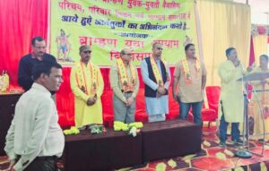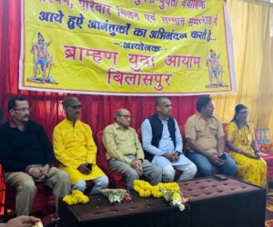 बिलासपुर-[जनहित न्यूज़] बिलासपुर ब्राह्मण युवा आयाम द्वारा समस्त ब्राह्मण युवक युवती वैवाहिक परिचय महासम्मेलन एवं परिवार मिलन समारोह का आयोजन सिद्धि मुस्कान भवन अशोक नगर सरकंडा में आयोजित किया गया। जिसमे अतिथि जिला पंचायत सभापति अंकित गौरहा, वरिष्ठ पत्रकार ज्ञान अवस्थी, समाजसेवी गौरव तिवारी, शिल्पी तिवारी, समाज सेवी अशोक तिवारी थे।