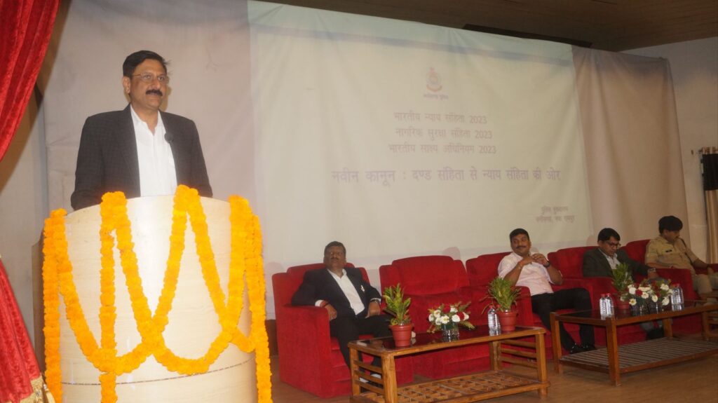 कार्यशाला में अपना अध्यक्षीय उद्बोधन देते हुये पुलिस महानिरीक्षक डॅा. संजीव शुक्ला के द्वारा पिछले 160 वर्षों से चली आ रही औपनिवेशिक क़ानूनों की शृंखला में बदलाव करते हुए विशुद्ध रूप से भारतीय समाज की आवश्यकता व भावनाओं के अनुरूप लाये गये नवीन कानून की महत्ता बताई गई। इसमें मुख्य रूप से अपराधी को दण्ड एवं पीड़ित को न्याय के विशेष प्रावधानों का उल्लेख होना बताया गया। उन्होंने बताया कि महिलाओं की सुरक्षा एवं न्याय को प्राथमिकता, आतंक व संगठित अपराधों के प्रावधान, वैज्ञानिक एवं इलेक्ट्राॅनिक साक्ष्यों के महत्व को इस नये कानून में स्पष्ट किया गया है।