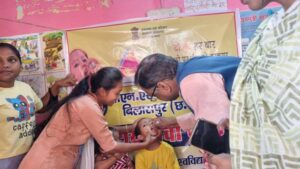 बिलासपुर-[जनहित न्यूज़] सघन पल्स पोलियो अभियान 2024 के तहत 3 मार्च पोलियो रविवार के रूप में मनाया गया। स्वास्थ्य विभाग द्वारा जिले के 0 से 5 वर्ष तक के बच्चों को टीकाकरण केंद्रों में पोलियो ड्रॉप पिलाने की व्यवस्था की गई थी।जहां जनप्रतिनिधियों ने पहुंचकर बच्चों को पोलियो की खुराक पिलाई । बिलासपुर के गांधी चौक प्राथमिक स्वास्थ्य केंद्र में बिलासपुर विधायक अमर अग्रवाल ने बच्चों को पोलियो की खुराक पिलाकर कार्यक्रम का शुभारंभ किया।