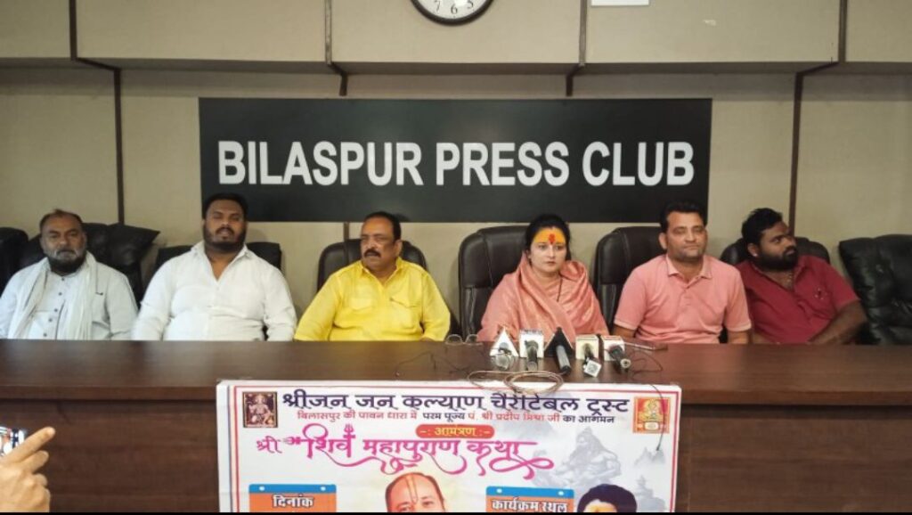 बिलासपुर-[जनहित न्यूज़] श्रीजन जनकल्याण चैरिटीबल ट्रस्ट की ओर से श्री शिव महापुराण कथा का आयोजन 11 अप्रैल से 15 अप्रैल तक किया जाएगा। चकरभाठा के नजदीक रहंगी गांव में इस आयोजन के लिए संस्था के सभी सदस्य जोर-शोर से तैयारी कर रहे हैं। संस्था के संस्थापक और अध्यक्ष मनीषा सिंह चौहान ने बिलासपुर प्रेस क्लब में पत्रकारों को बताया कि शिव महापुराण कथा आयोजन के लिए काफी दिनों से वे प्रयासरत थे। पहले सोचा लोकल कथा वाचकों के जरिए इसे संपन्न करा दे। लेकिन इन दिनों पंडित प्रदीप मिश्रा का कथा वाचन छत्तीसगढ़ के रायपुर, भाटापारा,बालोद व अन्य जगह में हो गया है, जिसे देखते हुए इच्छा जागी की एक बार पंडित प्रदीप मिश्रा की कथा बिलासपुर में भी आयोजित हो।