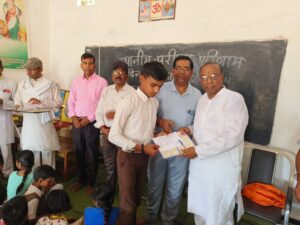 के कर कमलों से मां सरस्वती ब्रह्म स्वरूप ओम एवं भारत माता के चलचित्र के समक्ष दीप प्रचलित कर वार्षिक परीक्षा परिणाम की घोषणा की गई। सभी अतिथियों ने छात्र-छात्राओं को आशीर्वाद देते हुए कहा कि विद्यालय का वार्षिक परीक्षा परिणाम शतप्रतिशत आया है इसके लिए आप सभी बधाई के पात्र हैं और अच्छे से अगली कक्षा में मन लगाकर पढ़ाई करें ताकि इसी प्रकार से आपका वार्षिक परीक्षा परिणाम और अच्छा आए और आपके साथ आपके माता-पिता, गुरुजन, गांव ,मोहल्ला एवं प्रदेश का नाम रोशन हो ।