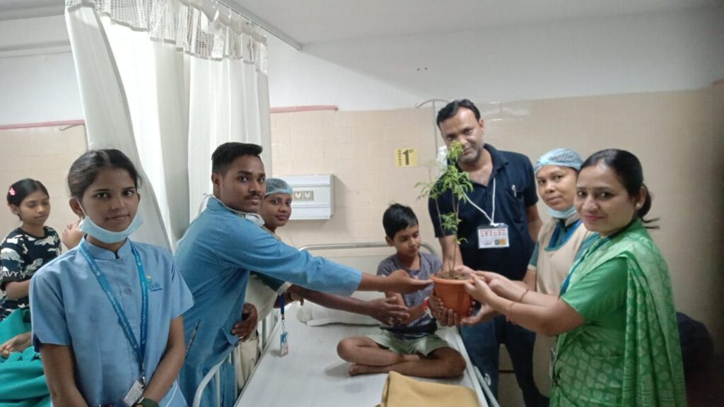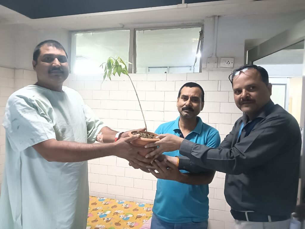 अस्पताल से डिस्चार्ज होने वाले सभी मरीजों को स्वास्थ्य लाभ की कामनाओं के साथ किया पौधा भेंट