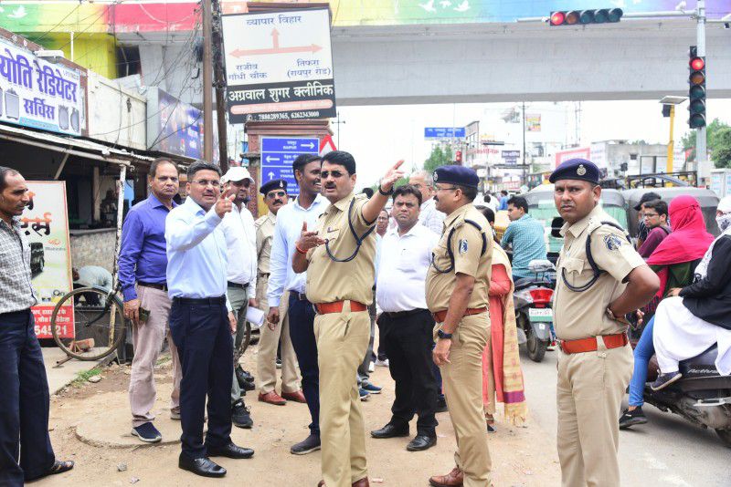इसके बाद कलेक्टर-एसपी ने शहर के व्यस्ततम महाराणा प्रताप चौक का जायजा लिया। यहां लेफ्ट टर्न क्लियर करने के निर्देश दिए। चौक के बाएं ओर के सिग्नल को थोड़ा पीछे शिफ्ट करने कहा। ट्रैफिक में व्यवधान बन रहे टीन शेड को हटाने के निर्देश दिए। इसके अलावा उन्होंने यहां गड्ढों को ठीक करने कहा।