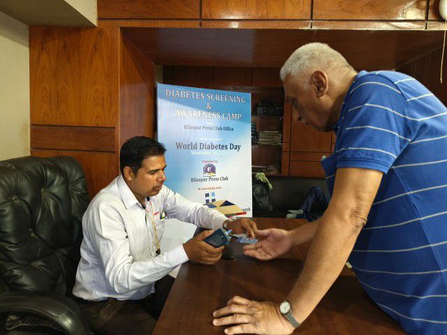 बिलासपुर-[जनहित न्यूज़] बिलासपुर प्रेस क्लब ने विश्व मधुमेह दिवस के अवसर पर सेंटर फॉर पब्लिक हेल्थ एंड हाइजीन रिसर्च के सहयोग से डायबिटीज स्क्रीनिंग और जागरूकता शिविर का आयोजन किया। इस शिविर का मुख्य उद्देश्य पत्रकारों में मधुमेह के प्रति जागरूकता बढ़ाना और उनकी सेहत की जांच करना था। शिविर में 70 से अधिक प्रेस क्लब के सदस्यों ने अपनी जांच कराई और मधुमेह से संबंधित जानकारी प्राप्त की। इस दौरान बिलासपुर प्रेस क्लब अध्यक्ष इरशाद अली,उपाध्यक्ष संजीव पांडेय,सचिव दिलीप यादव, कोषाध्यक्ष प्रतीक वासनिक, सह सचिव दिलीप जगवानी और कार्यकारिणी सदस्य गोपी डे के अलावा बड़ी संख्या में प्रेस क्लब मेंबर मौजूद रहे।