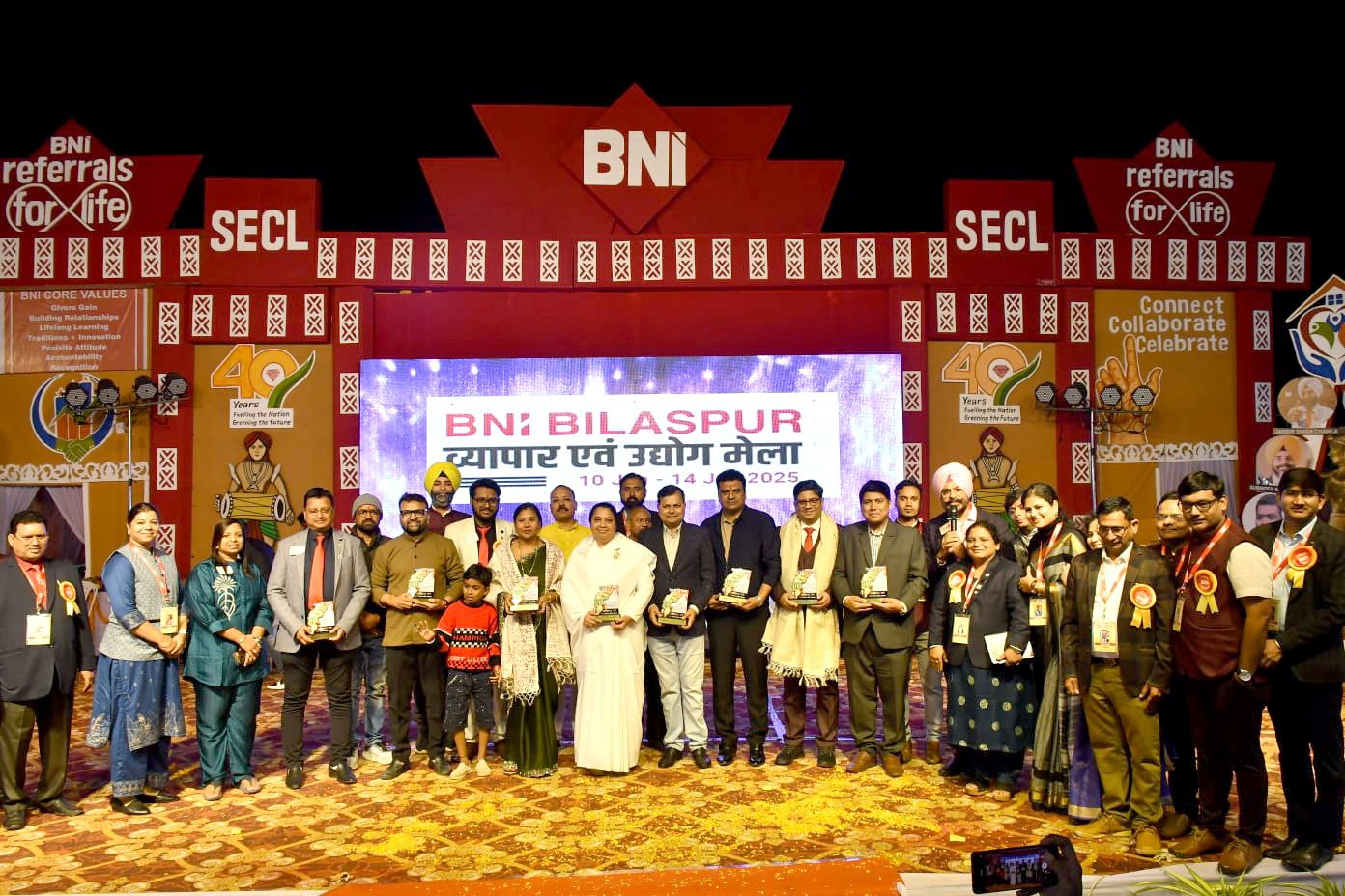 बिलासपुर-{जनहित न्यूज़} बिलासपुर आज शाम हुए आकर्षक कार्यक्रम में छत्तीसगढ़ की 11 विभूतियों का सम्मान किया गया। इनमें शामिल विभूतियों में डॉ. संदीप दवे, रामकृष्ण केयर अस्पताल, रायपुर, डॉ. सतीश मंत्री, डायरेक्टर श्री शिवम ग्रुप, आचार्य डॉ. पुष्पा दीक्षित (संस्कृत), डॉ. दिनेश मिश्रा, अंधविश्वास निर्मूलन, श्री प्रवीण झा, फिल ग्रुप, राजेश वैश्य, एक्जीक्यूटिव डायरेक्टर, बीएनआई रायपुर, रोटे. अमित जायसवाल, डिस्ट्रिक्ट गवर्नर रोटरी क्लब, डिस्ट्रिक्ट 3261 श्रीमती श्रद्धा साहू, बरतन बैंक दुर्गा, कमल सोनी, अध्यक्ष छ.ग. सराफ एसोसिएशन, भुपेन्द्र मेमा – एक्जीक्यूटिव डायरेक्टर बीएनआई दुर्ग भिलाई शामिल थे। इस अवसर पर डॉ. ओम माखीजा ने कहा कि, भैतिक लक्ष्य रखते है वैसे ही खुश रहने के लिए अध्यात्मिक्ता मदद करती है। प्रफुल्ल शर्मा ने कहाँ की बीएनआई की आयोजन की प्रशंसा कि और पूरे टीम को बधाई दी। छत्तीसगढ़ रत्न से सम्मानित डॉ. पुष्पा दिक्षित (संस्कृत) समय का बहुत महत्व होता है, जो समय का सदुप्रयोग करता है वो जीवन में आगे बढता है। श्री शिवम ग्रूप के सतीश मंत्री जी कहा कि, कोशिस करने वालों की कभी हार नहीं होती। कोई भी लक्ष्य प्राप्त हो सकता है। फिल ग्रूप के मैनेजिंग डायरेक्टर प्रवीण झा ने कहा कि, लक्ष्य हमेशा बड़े बनाना चाहिए एवं उसे पाने के लिए जी जान लगा देना चाहिए एवं उन्होने बीएनआई की टीम वर्क की बधाई दी। बीएनआई रायपुर के एक्जीक्यूटिव डायरेटर ने बीएनआई के गीवन फैलोसपी को बताया एवं बिलासपुर बीएनआई को बधाई दी, उन्होने इतनी शक्ती हमे देना गीत भी गुनगुनाया। भूपेन्द्र नेमा एक्जीक्यूटिव डायरेटर दूर्ग-भिलाई ने कहा की, बीएनआई व्यापार करने के तरीके को बदल रहा है।