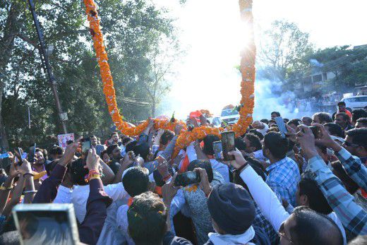 आज भारतीय जनता पार्टी के प्रदेश अध्यक्ष के निर्वाचन के बाद नगर आगमन पर विधानसभा क्षेत्र बेलतरा के कार्यकर्ताओं से स्थानीय चुनाव मद्देनजर रुबरु हुए युवा स्वागत के लिए नूतन चौक में मोर्चा सम्हाले हुए युवामोर्चा के कार्यकर्ताओं फटाखों की लड़ियों जला कर फूल मालाओं की वर्षा से नवनिर्वाचित अध्यक्ष का स्वागत किया छत्तीसगढ़ की पारंपरिक लोक नर्तक दल ने रास्ते में अगुवानी की ओर प्रदेश अध्यक्ष के मंच आसीन होते ही सभी ने गगनभेदी नारे लगा कर वातावरण को और भी ऊर्जा से भर दिया