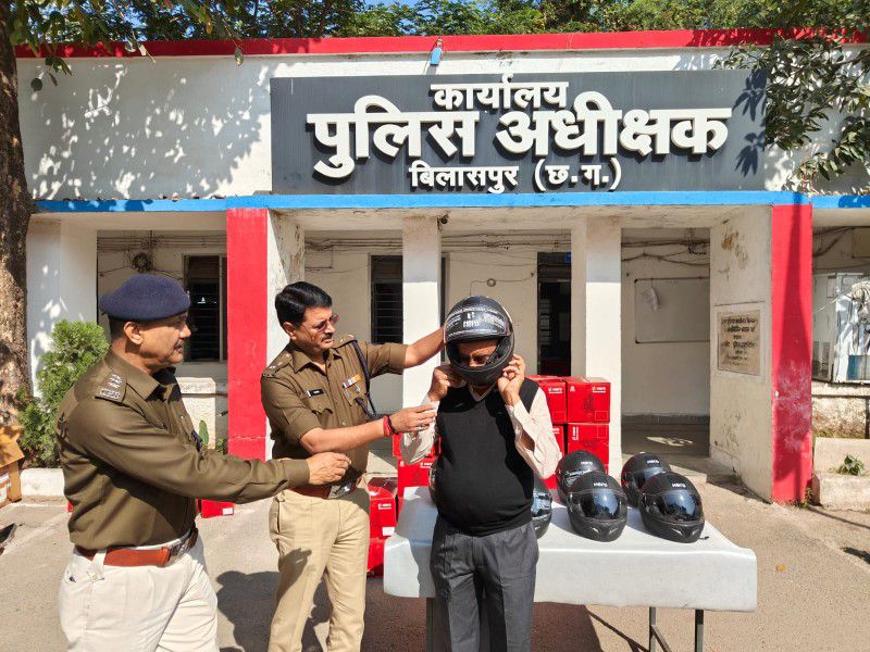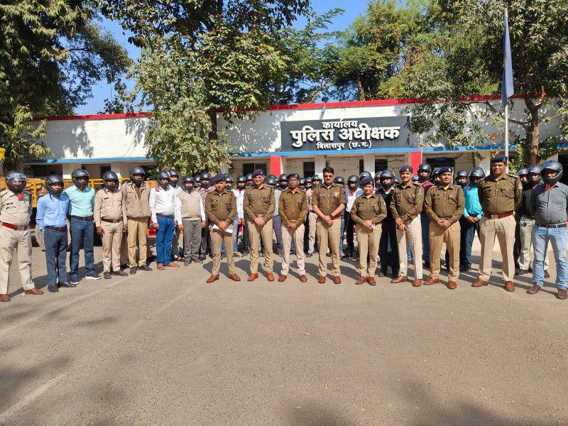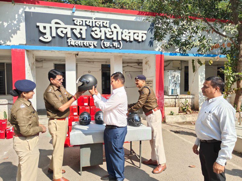 जिसमें पुलिस अधीक्षक जिला बिलासपुर रजनेश सिंह (आईपीएस) के द्वारा समस्त कार्यालय स्टाफ एवं कुछ थाना स्टाफ को निशुल्क हेलमेट वितरण किया गया।
