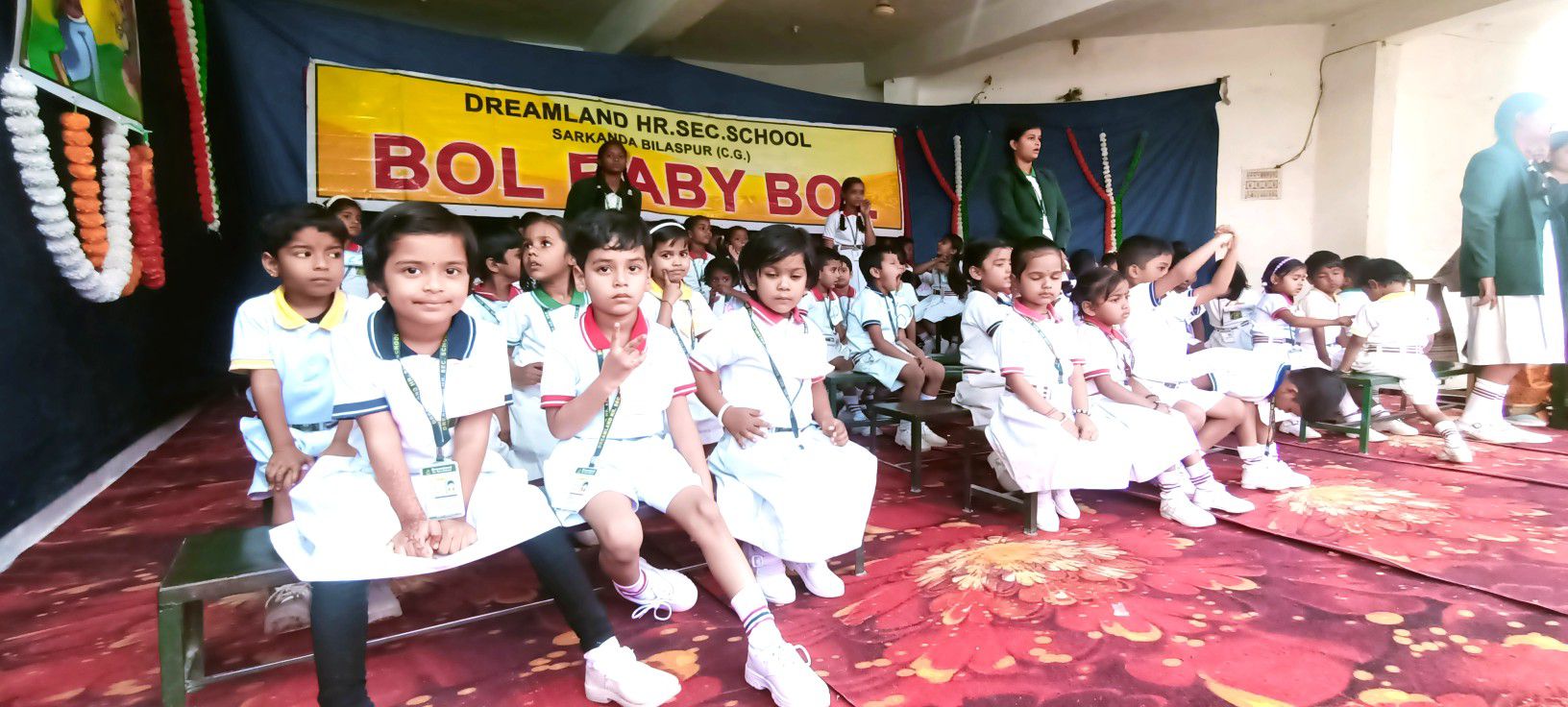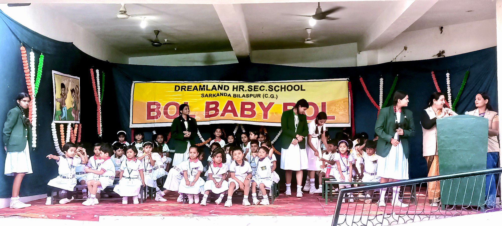 बिलासपुर-{जनहित न्यूज़} बिलासपुर आज ड्रीमलैंड हायर सेकेंडरी स्कूल में “बोल बेबी बोल ” का कार्यक्रम आयोजित किया गया। जिसमें कक्षा नर्सरी .के .जी.1 .के. जी 2 के विद्यार्थियों ने भाग लिया कार्यक्रम के मुख्य