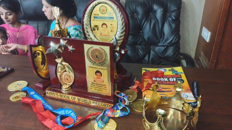 प्रारंभिक स्तर पर जीवन के प्रारंभ में ही तीन विश्व रिकॉर्ड बुक में इसका अपना जुड़ चुका है। जंपिंग के मामले में भी उसने रिकॉर्ड काम किया है 1 मिनट में 102 बार जंपिंग कर बच्ची ने पिछले 72 बार के जंपिंग का रिकॉर्ड तोड़ते हुए विश्व रिकॉर्ड में अपनी जगह बना ली है। इसी तरह विभिन्न पहचान पत्रों में 42 तरह के पहचान पत्र जो शासन द्वारा प्रदान किए जाते हैं इस बच्ची के नाम पर दर्ज हैं। 42 तरह के प्रमाण पत्र बनवाकर परिवार ने इस छोटी सी उम्र में इसका विश्व कीर्तिमान बनवा दिया है। इस तरह का रिकॉर्ड पुराने किसी बच्चे के नाम पर 27 प्रमाण पत्रों का था जिसे पीछे छोड़कर इस बच्चे के नाम पर 42 प्रमाण पत्र होने का रिकॉर्ड दर्ज किया गया है। विभिन्न संस्थाओं से जो अंतरराष्ट्रीय स्तर एवं राष्ट्रीय स्तर से जांच कर प्रमाण पत्र मेडल प्रदान किया जाता है एक ही संस्था से कम से कम 10 इनाम इसे दिया गया है, जिसे घर पर जाकर अवलोकन किया जा सकता है।