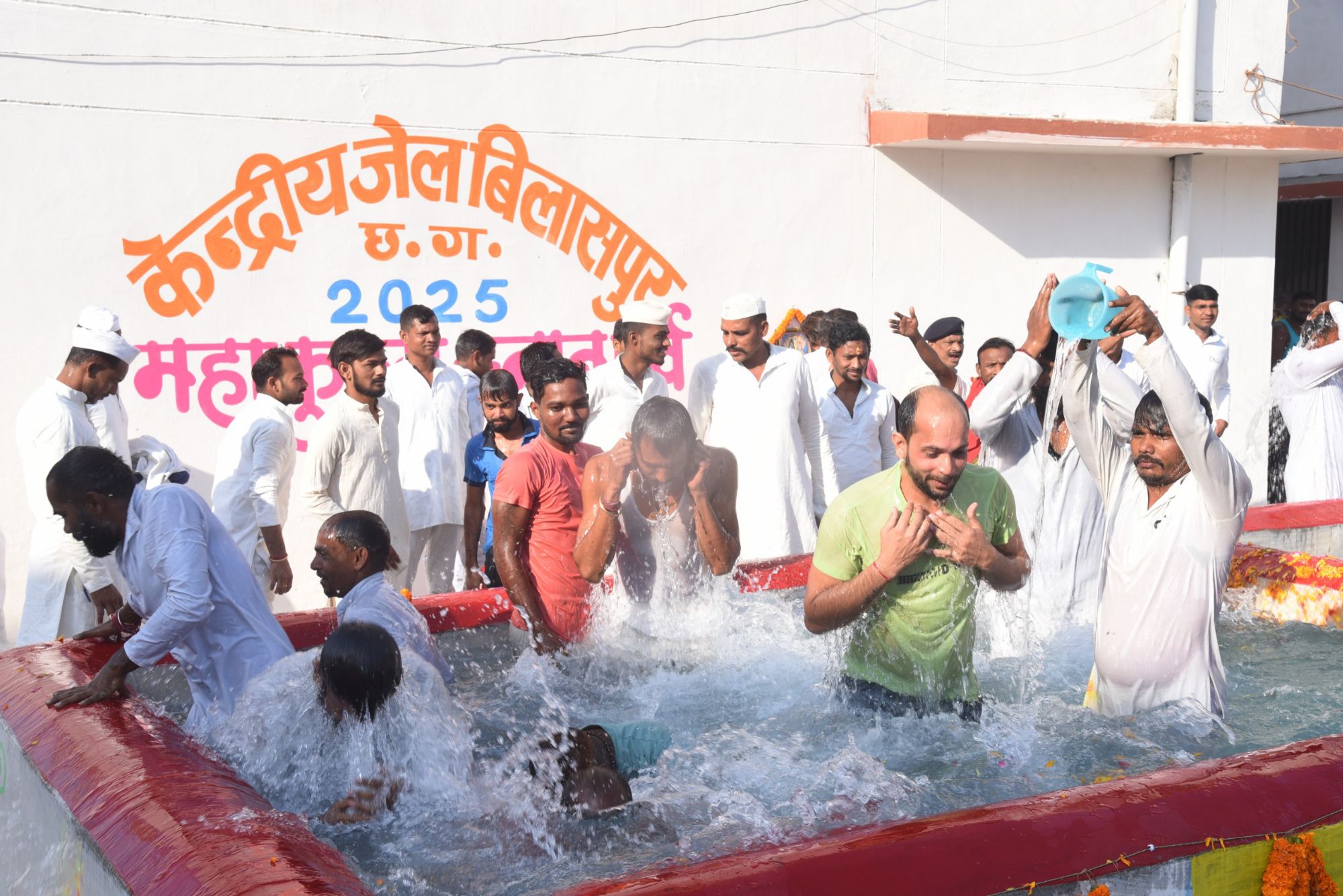 बिलासपुर-[जनहित न्यूज़] केन्द्रीय जेल बिलासपुर में आज सवेरे प्रयागराज महाकुंभ से मंगाये गये गंगा जल से कैदियों का सामूहिक स्नान करवाया गया। मुख्यमंत्री विष्णुदेव साय एवं उप मुख्यमंत्री विजय शर्मा के निर्देश पर जेल में बंद कैदियों ने पहली बार आध्यात्मिक स्नान का आनंद उठाया। बिलासपुर केन्द्रिय जेल में बंद करीब दो हजार कैदियों ने हर-हर गंगे की जप के साथ डुबकी लगाई।