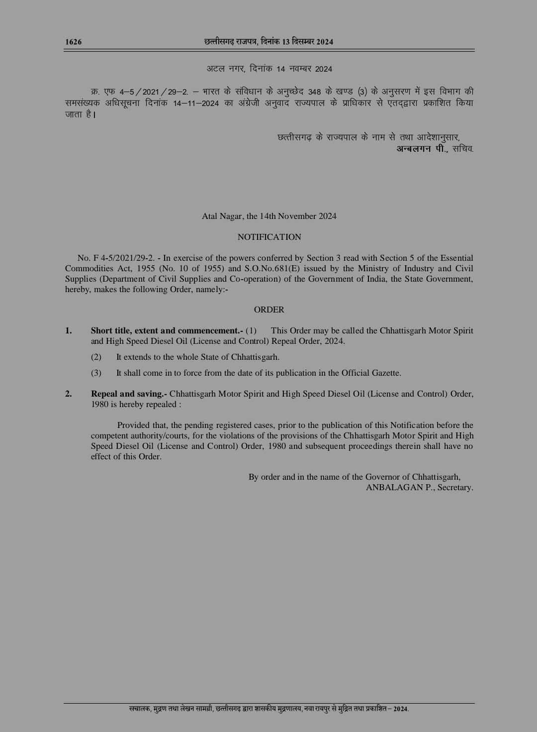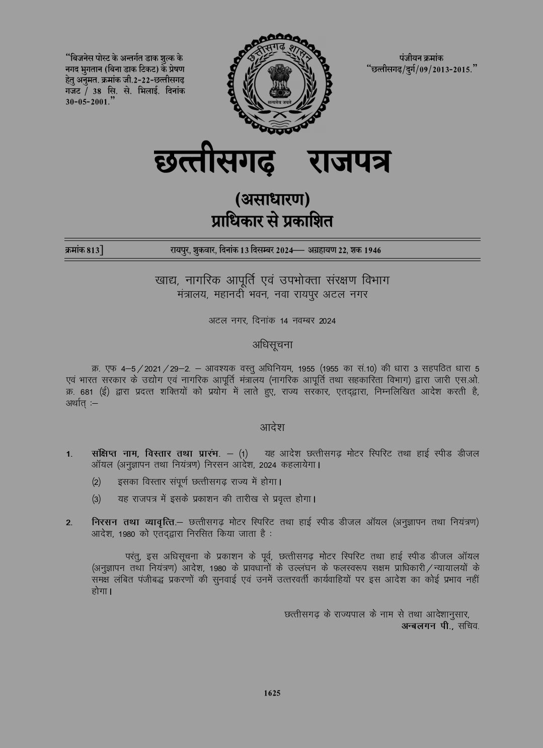 बिलासपुर-[जनहित न्यूज़] राज्य के पेट्रोल पंपों में छत्तीसगढ़ मोटर स्पिरिट एवं हाई स्पीड डीजल ऑयल (अनुज्ञापन तथा नियंत्रण) आदेश, 1980 के तहत पेट्रोलियम उत्पादों के विक्रय हेतु रिटेल सेलिंग लायसेंस फूड लाइसेंस की अनिवार्यता थी,जिसको संज्ञान में लाते हुए इससे जुड़ी विसंगतियों की ओर बेलतरा विधायक सुशांत शुक्ला ने पिछले साल के बजट सत्र में मुद्दा उठाया था। जिसके बाद खाद्य विभाग ने निरस्तीकरण की प्रक्रिया करते हुए पेट्रोल पंपों से फूड लाइसेंस की अनिवार्यता को समाप्त कर दिया है।