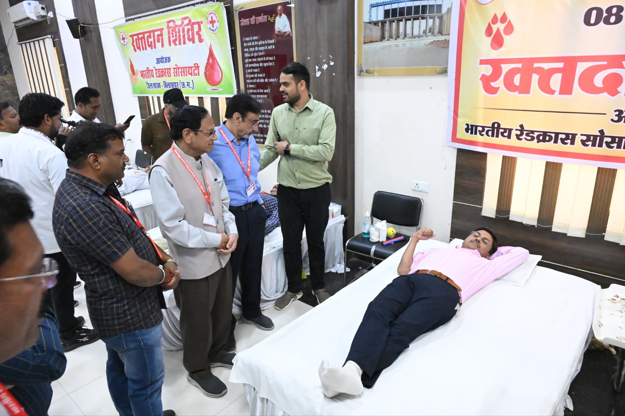 बिलासपुर-[जनहित न्यूज़] भारतीय रेडक्रॉस सोसायटी द्वारा आज अंतर्राष्ट्रीय महिला दिवस के अवसर पर विशाल रक्तदान शिविर का आयोजन प्रार्थना सभा भवन में किया गया। कार्यक्रम में महापौर श्रीमती पूजा विधानी और कलेक्टर एवं रेडक्रॉस के अध्यक्ष अवनीश शरण, नगर निगम कमिश्नर अमित कुमार शामिल हुए। रक्तदान शिविर में महिलाओं ने बढ़-चढ़ कर हिस्सा लिया और 167 यूनिट रक्तदान किया। कलेक्टर अवनीश शरण ने भी इस अवसर पर रक्तदान किया। यह तीसरा अवसर है जब रेडक्रॉस द्वारा आयोजित रक्तदान शिविर में कलेक्टर एवं अध्यक्ष द्वारा रक्तदान किया गया है।