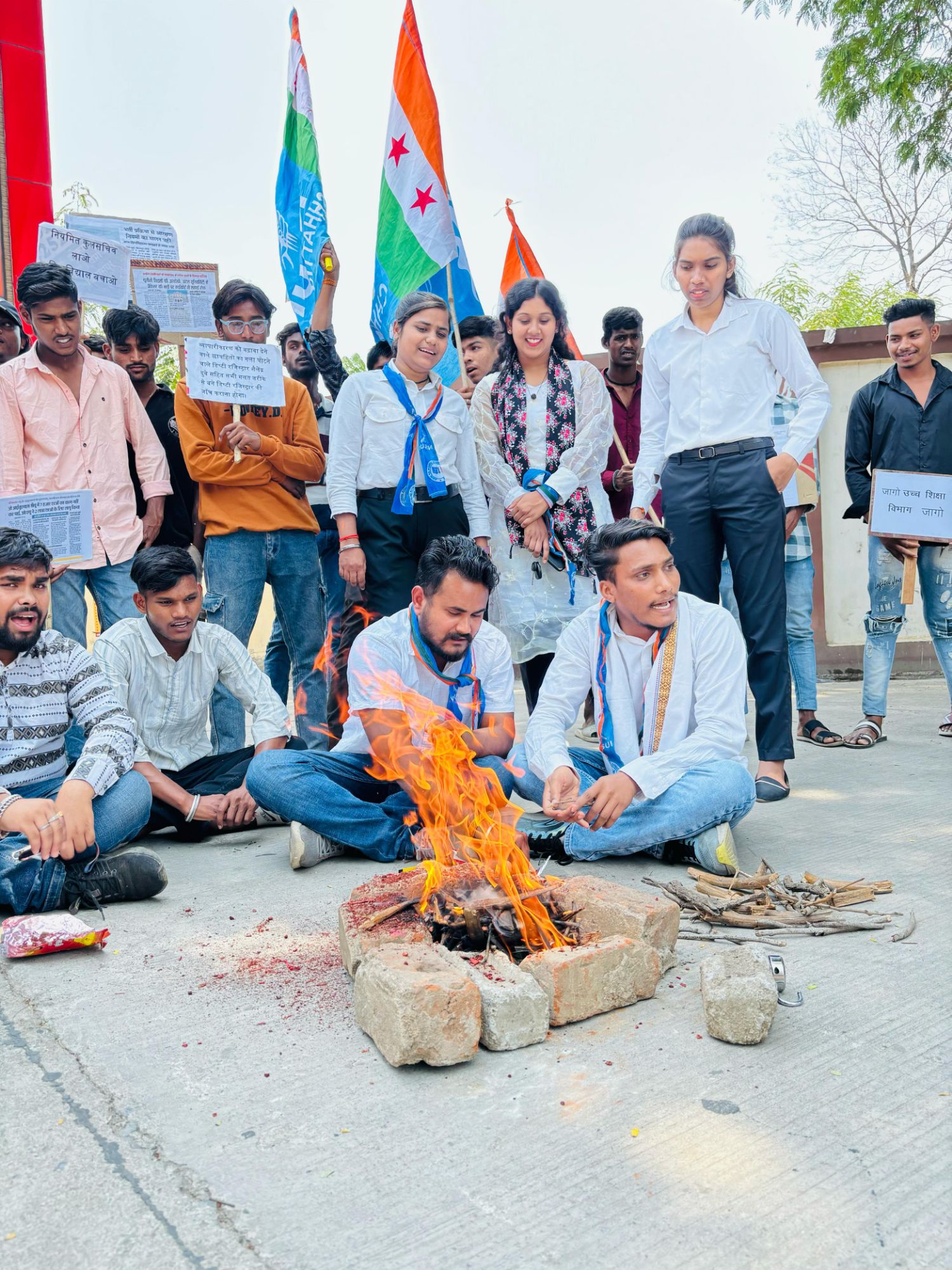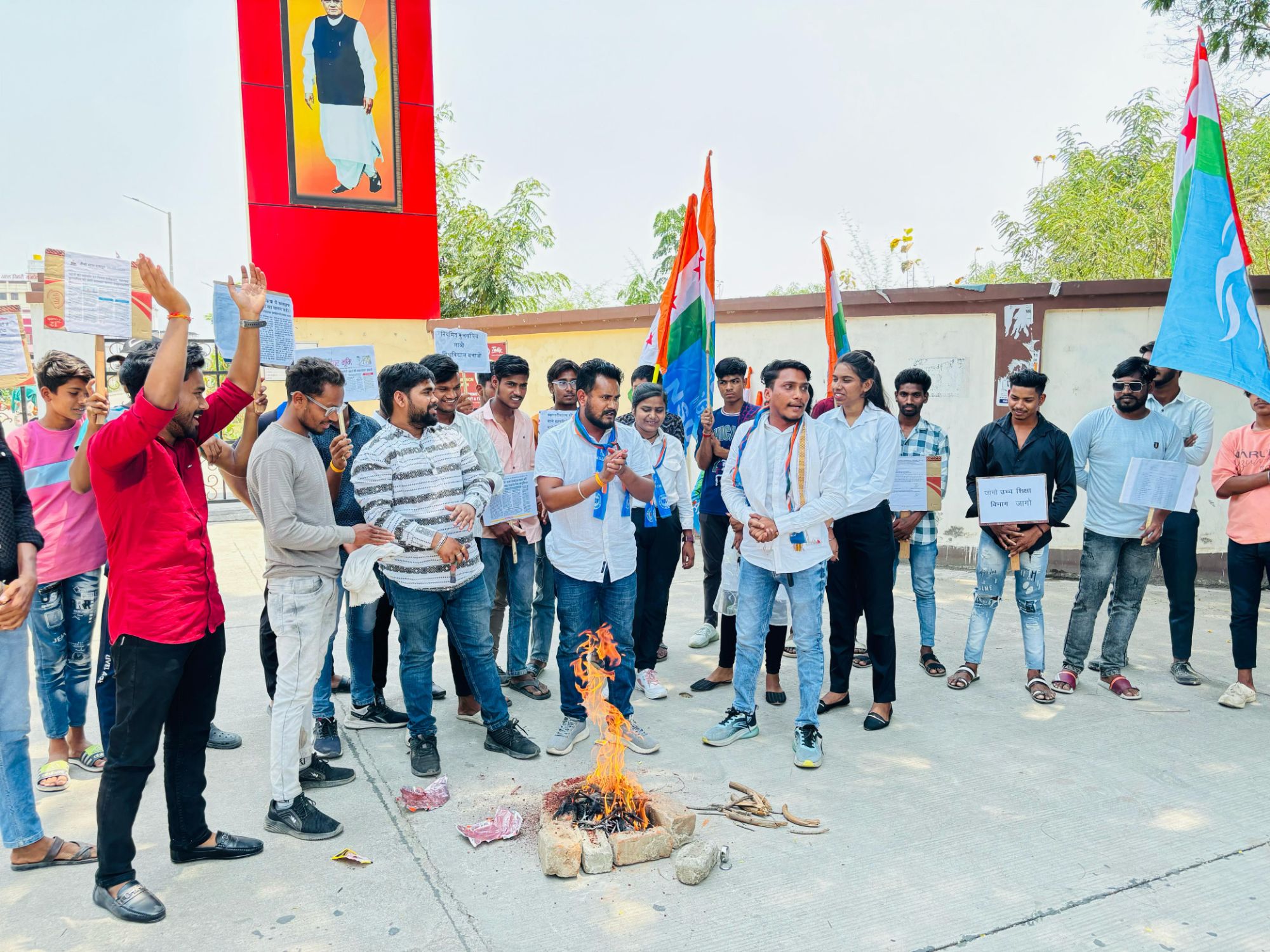 अटल बिहारी वाजपेयी विश्वविद्यालय प्रशासन और उच्च शिक्षा विभाग की निष्क्रियता पर एनएसयूआई का जंगी विरोध प्रदर्शन…!