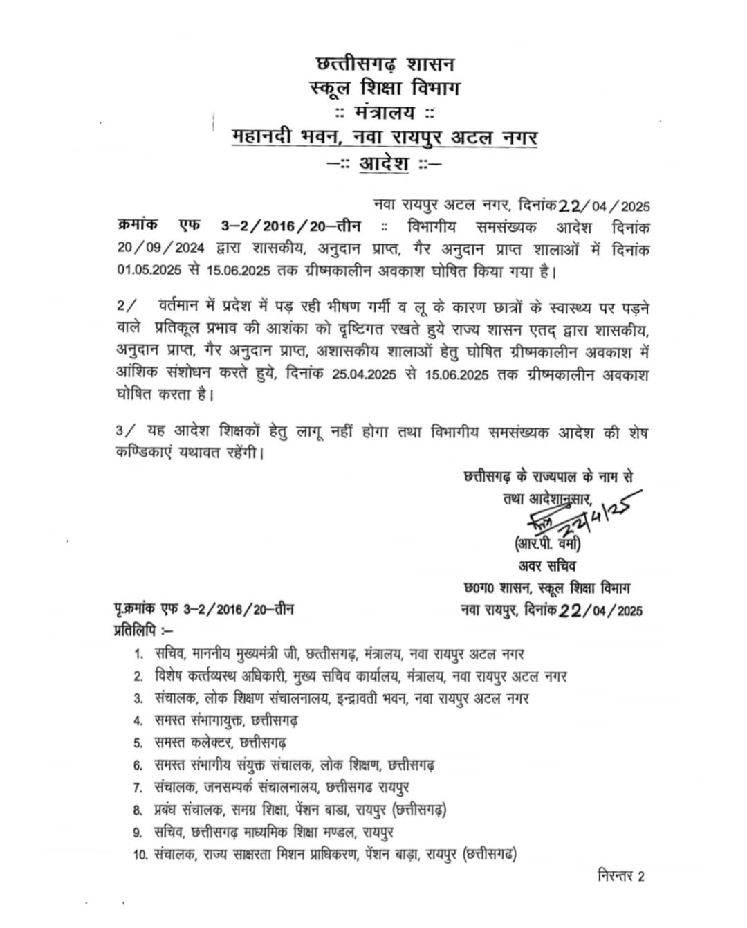 25 अप्रैल से 15 जून तक स्कूलों में रहेंगी छुट्टियां… आदेश हुआ जारी…