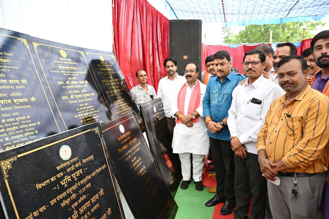 बिलासपुर-{जनहित न्यूज़}बिलासपुर उप मुख्यमंत्री एवं जिले के प्रभारी मंत्री अरुण साव ने आज बेलतरा विधानसभा क्षेत्र की गांव गोंदइया में आयोजित समारोह में क्षेत्र के विकास के लिए 21 करोड़ 25 लाख रुपए से अधिक लागत के 44 विकास कार्यों का भूमिपूजन किया। इनमें इन प्रमुख रूप से गोंदइया में 12 करोड़ 1 लाख की लागत से एनीकेट निर्माण और अरपा नदी में जल संसाधन विभाग के एक करोड़ 69 लाख की लागत से डाइक निर्माण तथा लगरा में दो करोड़ 81 लाख की लागत से एनीकेट प्रोटक्शन वॉल का निर्माण शामिल है। समारोह की अध्यक्षता स्थानीय विधायक सुशांत शुक्ला ने की।
