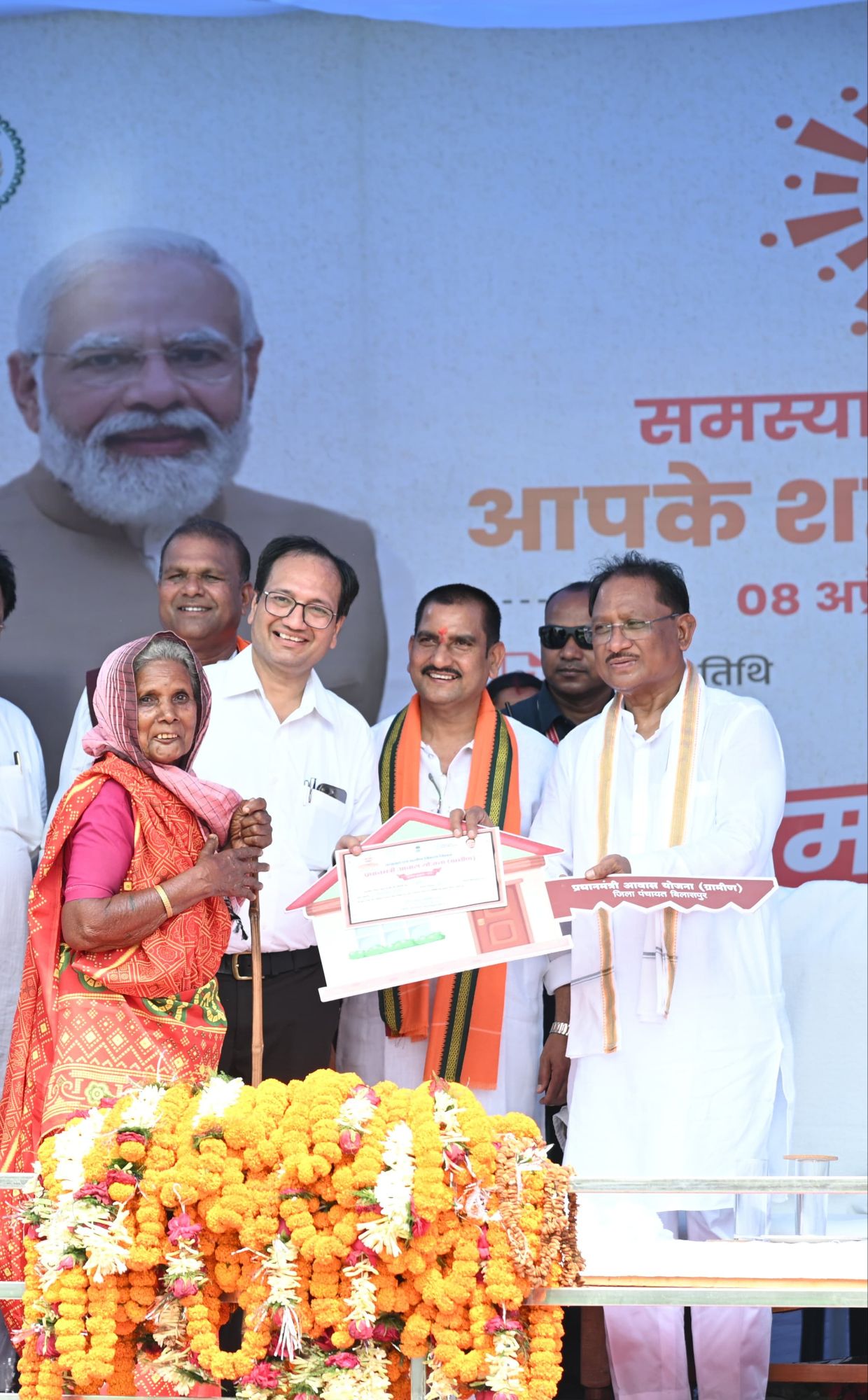 सुशासन तिहार के तीसरे चरण के तहत बिलासपुर जिले के कोटा ब्लॉक के अंतर्गत दूरस्थ आदिवासी ग्राम आमागोहन के समाधान शिविर में मुख्यमंत्री श्री साय शामिल हुए। मुख्यमंत्री श्री साय ने ग्रामीणों को सम्बोधित करते हुए कहा कि आप सभी के आशीर्वाद से राज्य में हमारी सरकार बनी और डेढ़ वर्ष पूरे कर लिए हैं। इस अवधि में लोकसभा,नगरीय निकाय,नगर पंचायत में हमारी सरकार बनी। मुख्यमंत्री श्री साय ने कहा कि हमारी सरकार ने मोदी की गारंटी के तहत किए गए सभी वादों को पूरा किया है। मुख्यमंत्री ने कहा कि सरकार ने शपथ लेते ही अगले दिन से 18 लाख प्रधानमंत्री आवास की स्वीकृति दी। उन्होंने कहा कि केंद्रीय पंचायत मंत्री श्री शिवराज सिंह ने दुर्ग और अम्बिकापुर में भी राज्यवासियों को 3-3 लाख पीएम आवास दिये। इसके अलावा पीएम जनमन आवास और नक्सल क्षेत्रों में आत्म समर्पित परिवारों को आवास दिए जा रहे हैं। उन्होंने कहा कि आवास प्लस में जिनका नाम है उनको भी आवास दिया जाएगा।