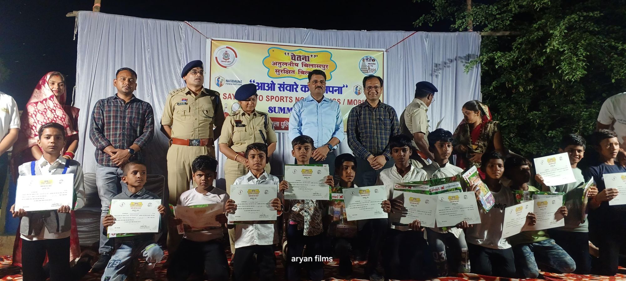 ज्ञातव्य है कि बिलासपुर पुलिस द्वारा जिले के विभिन्न क्षेत्रों में आओ संवारे कल अपना* का कार्यक्रम विभिन्न विधाओं एवं खेल स्पर्धाओं के माध्यम से चलाया जा रहा है जो कि बच्चों के सर्वांगीण विकास के साथ-साथ उनके लिए गर्मी की छुट्टियां में समर कैंप के रूप में उनके भरपूर मनोरंजन के साथ साथ उनके शारीरिक, मानसिक विकास में भी सहायक बन रहा है।