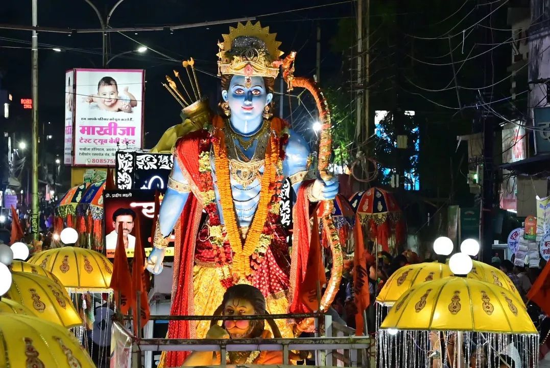 शोभायात्रा की अगुवाई 20 फीट ऊंची महाराणा प्रताप और भगवान श्रीराम की प्रतिमा ने की।