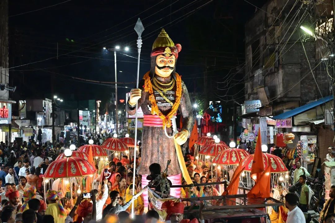 उनके पीछे बच्चों की जीवंत झांकियां, कर्मा और गेड़ी नृत्य, ढोल-ताशे, धुमाल की धुन पर नृत्य करते लोग और तलवार, लाठी तथा बंदूक से शौर्य प्रदर्शन कर रहे युवा शामिल रहे। सिर पर पगड़ी और हाथों में भगवा ध्वज लिए लोगों ने “महाराणा प्रताप की जय” के नारों से वातावरण को गुंजायमान कर दिया।