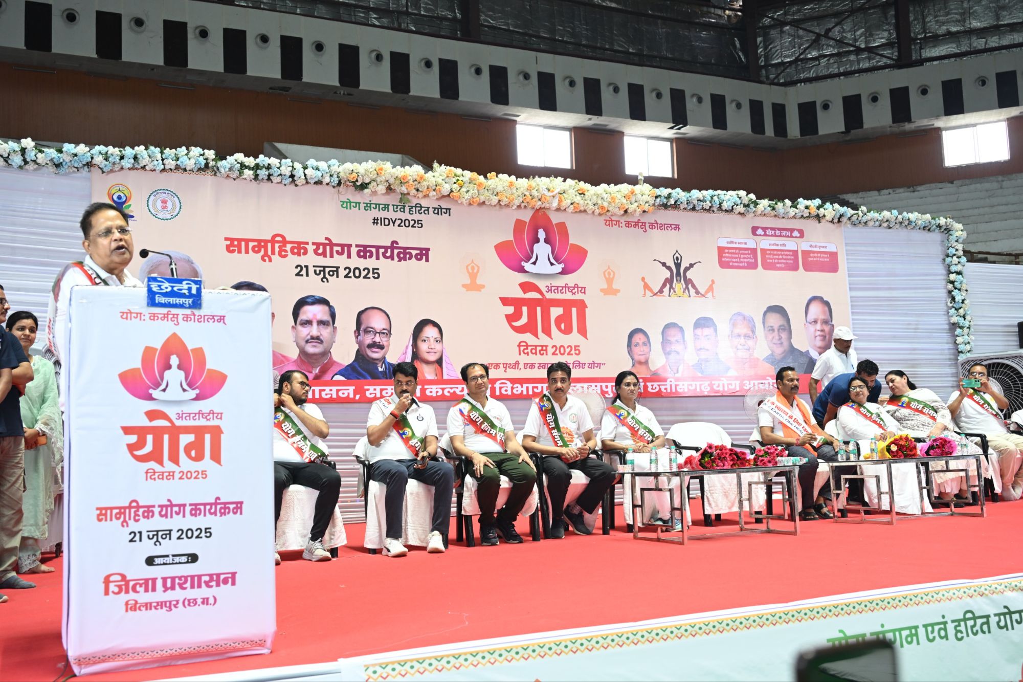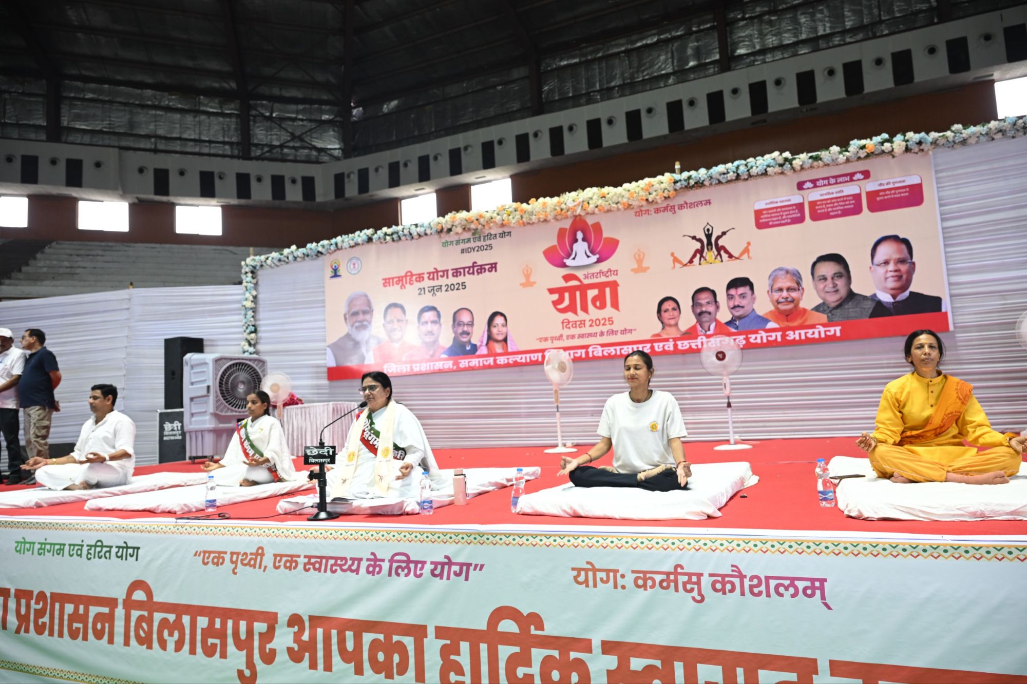 बिलासपुर-{जनहित न्यूज़} आज पूरे देश के साथ साथ 11 वां अंतर्राष्ट्रीय योग दिवस बड़े उत्साह और जोश के साथ जिले में भी मनाया गया। स्व. बी.आर. यादव बहतराई स्टेडियम में आयोजित जिला स्तरीय सामूहिक योगाभ्यास कार्यक्रम में जनप्रतिनिधियों, जिले के आला अधिकारियों और सैकड़ों की संख्या में नगरवासियों ने योगाभ्यास किया।