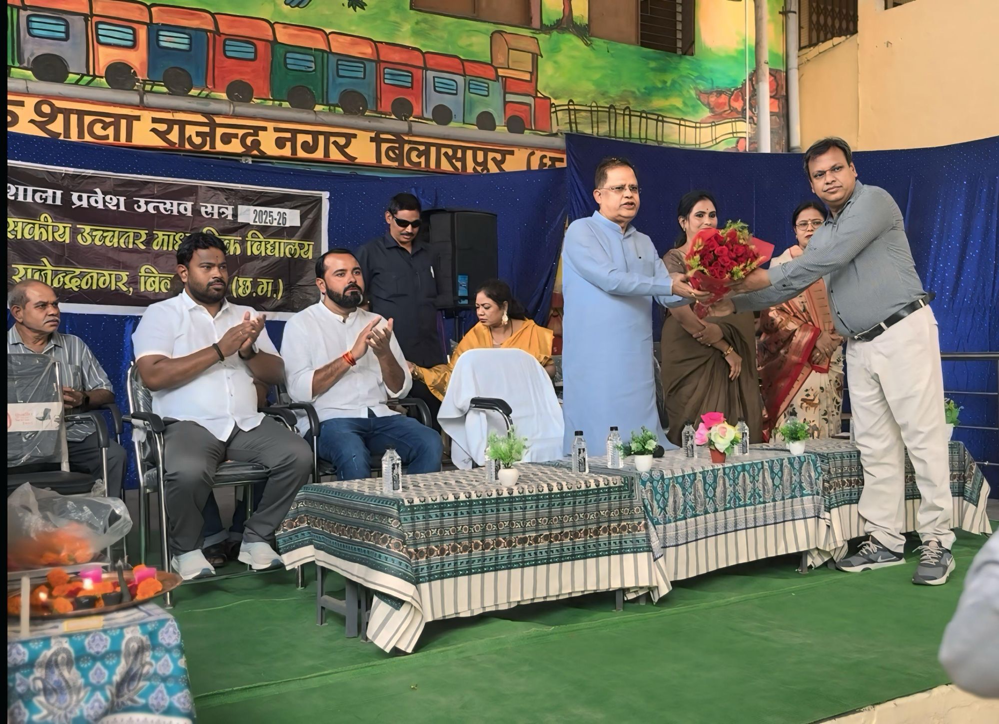 बिलासपुर-[जनहित न्यूज़] शासकीय उच्चतर माध्यमिक विद्यालय, राजेंद्र नगर में सोमवार को “शाला प्रवेश उत्सव” बड़े ही उत्साह के साथ मनाया गया। इस अवसर पर मुख्य अतिथि के रूप में नगर विधायक एवं पूर्व मंत्री अमर अग्रवाल उपस्थित रहे। कार्यक्रम की अध्यक्षता नगर निगम महापौर श्रीमती पूजा विधानी ने की।