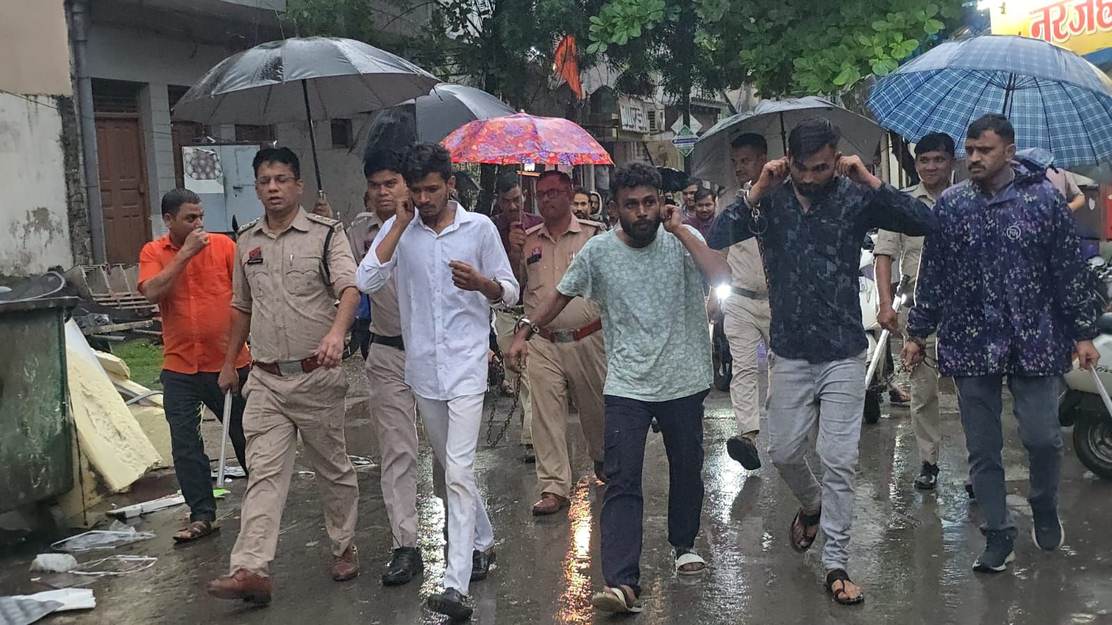 मामला इस प्रकार है कि 07 जुलाई को प्रार्थी मोहम्मद मुस्तकीम पिता मोहम्मद मुख्तार उम्र 29 वर्ष निवासी भारतीय नगर थाना सिविल लाईन के द्वारा थाना उपस्थित आकर रिपोर्ट दर्ज कराया कि भाई हफीज अली जो नाले हैदर सवारी सुन्नी सामाज का तैबा चौक तालापारा से खपरगंज गस्त करने के लिए निकली थी सुबह करीब 04.00 बजे खपरगंज ईमाम बाडा के पास पहुंचे थे जो सवारी के पीछे सामाज के राजा अली, शरफराज एवं गिरीराज गोस्वामी और रिंटू उपस्थित थे उसी समय खपरगंज का रहने वाला सुहैल खान, अपने साथी समीर खान, जुनैद खान व जुबैद खान मिलकर खपरगंज चौक के पास गुस्त सवारी को रोककर मां बहन की अश्लील गाली गुप्तार करने लगे एवं सवारी में लगे चांदी के नाल को धार्मिक भावना को ठेस पहुंचाने के नियत से खींच कर झुमाझटकी करने लगे और पिछे महिलाओ के साथ अभद्र व्यवाहर करने लगे मना करने पर जान से मारने की धमकी देते हुए, सवारी अशुद्ध करने के नियत से नाली का पानी एवं गोबर पानी डालने का प्रयास करने लगे एवं दो समुदायों के मध्य समाजिक तनाव उत्पन्न करने का प्रयास किया गया।