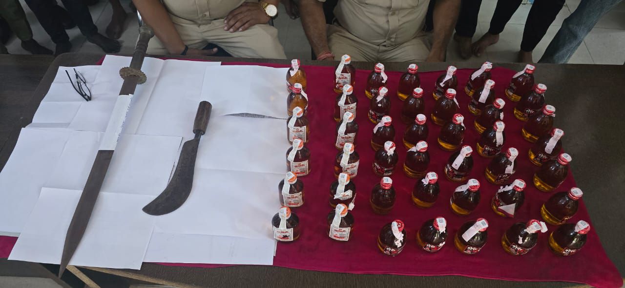 पुलिस ने दबिश के दौरान घातक हथियार और अवैध शराब भी जब्त की है। एक युवक के खिलाफ 34(2) आबकारी अधिनियम और दो युवकों के खिलाफ आर्म्स एक्ट के तहत प्रकरण दर्ज किया गया है।