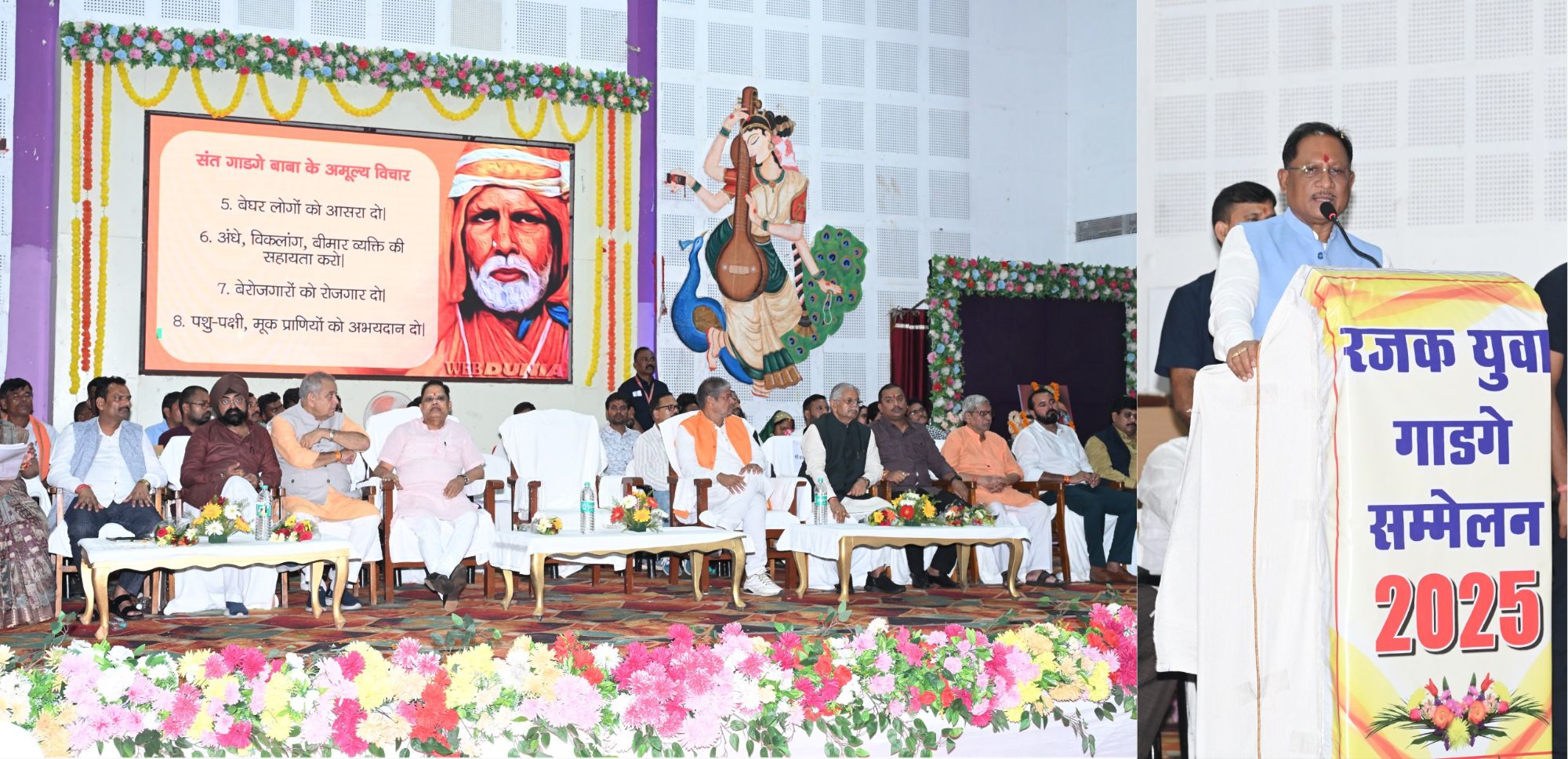बिलासपुर-[जनहित न्यूज़] मुख्यमंत्री विष्णुदेव साय ने सिम्स ऑडिटोरियम में आयोजित रजक युवा गाडगे सम्मेलन में शामिल हुए। उन्होंने महापुरूष संत गाडगे की पूजा अर्चना कर राज्य स्तरीय गाडगे सम्मेलन का शुभारंभ किया।