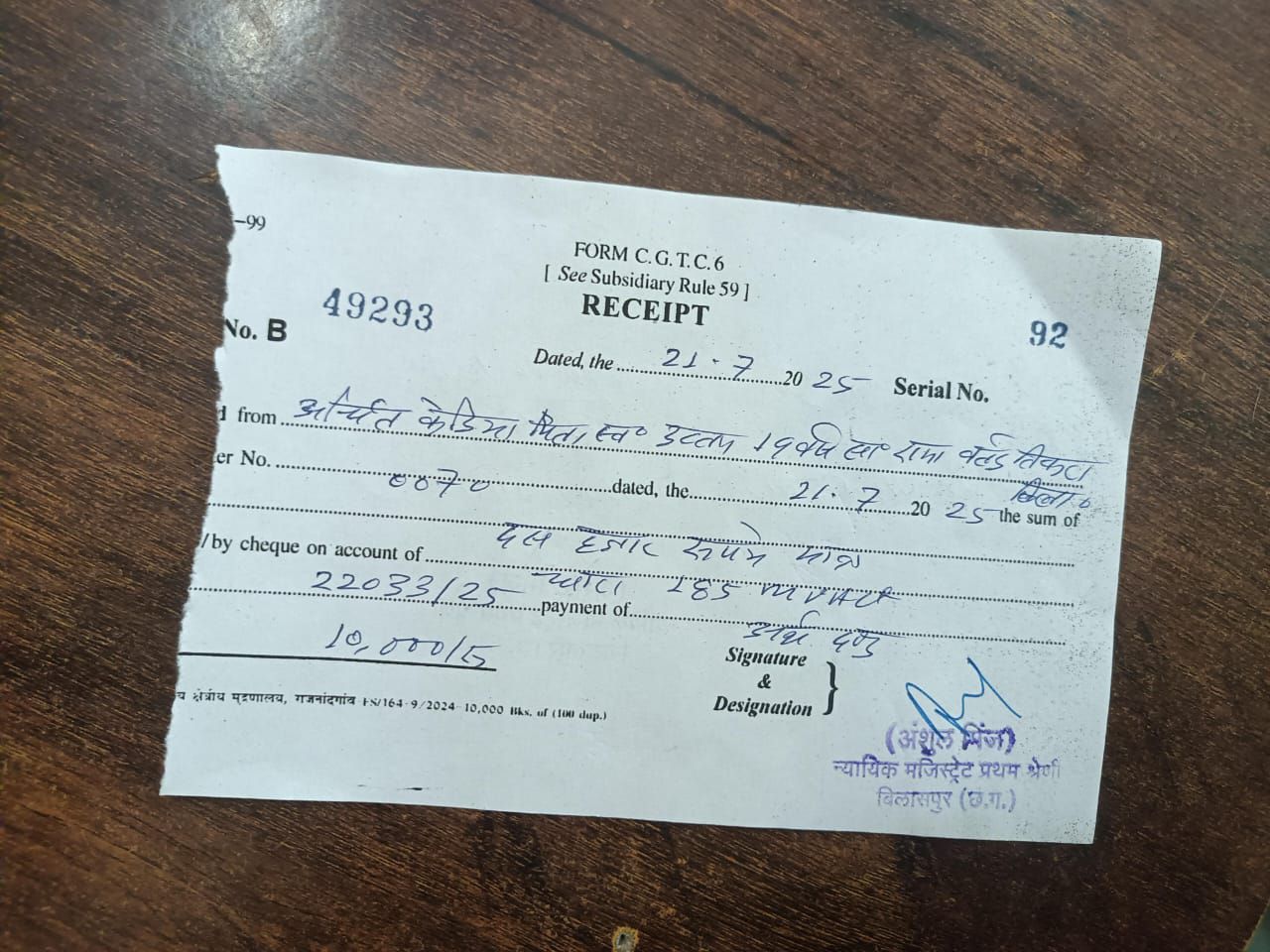 धारा 185 मोटर व्हीकल एक्ट के तहत मामला न्यायालय में प्रस्तुत किया। जिसमें ₹10,000 का जुर्माना लगाया गया। बीएनएसएस की धारा 106 के अंतर्गत एयरगन को जप्त किया गया।