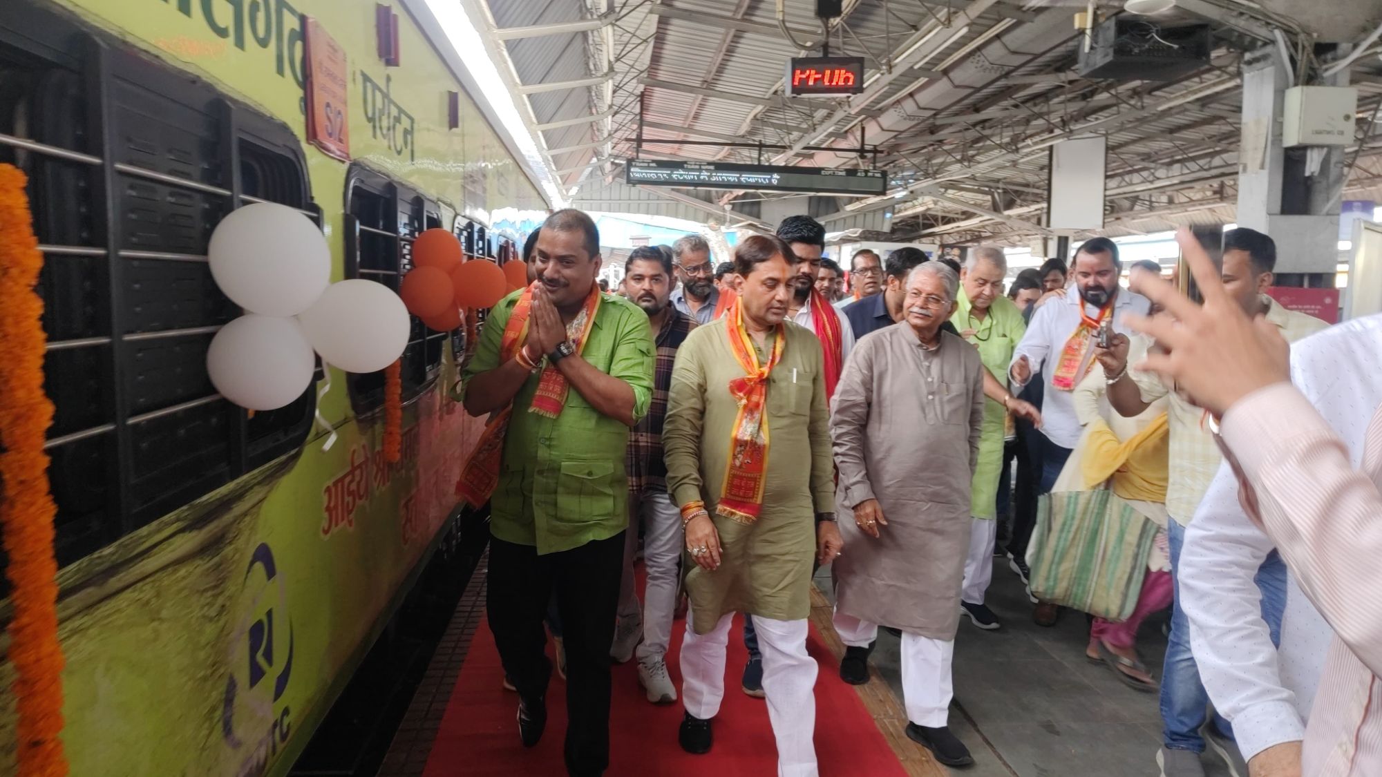 रेलवे स्टेशन से अयोध्या धाम यात्रा के लिए जाने वाले श्रद्धालुओं का स्टेशन में भव्य स्वागत किया गया।