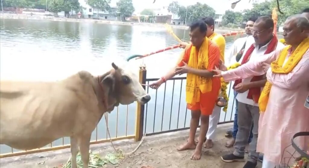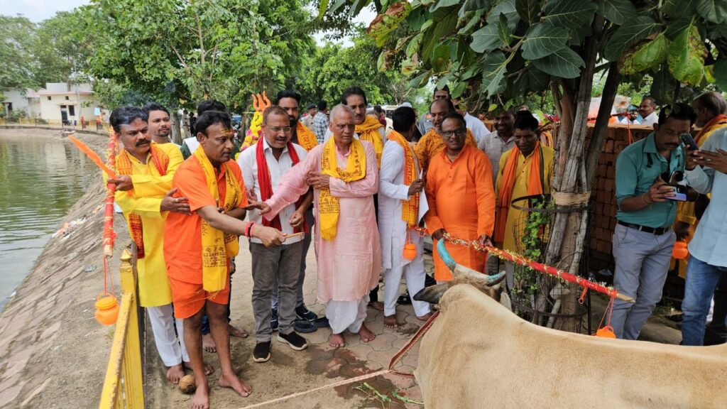 सबसे पहले गौमाता का पूजा अर्चना की गई। पूजा अर्चना और आरती उतारने के साथ ही सभी ने एकजूट होकर गोसंरक्षण की शपथ ली। शपथ लेने के बाद तालाब से जल भरकर कांवर यात्रा की शुरुआत की। यात्रा के दौरान कांग्रेसजन लोगों को गोसंरक्षण के लिए प्रेरित करते चल रहे थे।