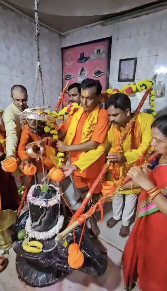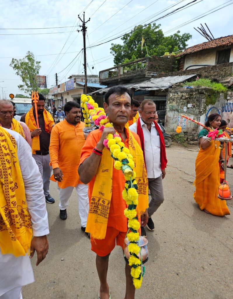 कांवर यात्रा से पहले जिला कांग्रेस कमेटी के अध्यक्ष विजय केशरवानी सावन सोमवार के अंतिम सोमवार को मनियारी नदी के किनारे स्थित रुद्र शिव का दर्शन किया। शिव मंदिर में जलाभिषेक व पूजा अर्चना के बाद मोहभट्ठा स्थित महादेव मंदिर पहुंचे। शिव मंदिर में पूजा अर्चना,जलाभिषेक के बाद महाआरती में शामिल हुए। यहां से सीधे तिफरा स्थित बछेरा तालाब पहुंचे। बछेरा तालाब से विजय की अगुवाई में यदुनंदन नगर शिव मंदिर के लिए कांवर यात्रा प्रारंभ हुई।
