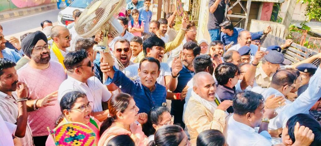 कांग्रेस जन दोपहर 2 बजे कांग्रेस भवन से रैली निकालकर तिफरा कार्यालय पहुंचे।