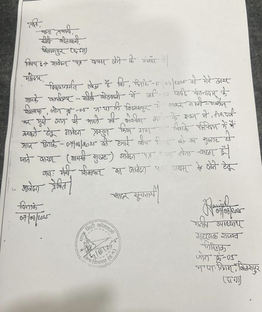 बिलासपुर-{जनहित न्यूज} भ्रष्टाचार के विरुद्ध एक सशक्त संदेश देते हुए बिलासपुर नगर निगम के लोकप्रिय भाजपा पार्षद रंगा नादम ने स्पष्ट कर दिया है कि वे किसी भी सूरत में गरीबों और ज़रूरतमंदों से राशन कार्ड के नाम पर रिश्वत वसूली को बर्दाश्त नहीं करेंगे।