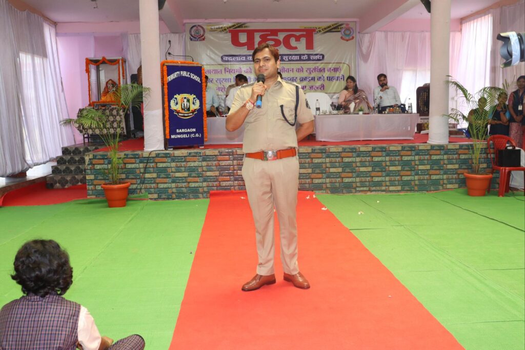 मुंगेली-[जनहित न्यूज़] पुलिस अधीक्षक भोजराम पटेल के नेतृत्व में मुंगेली पुलिस द्वारा संचालित ‘पहल अभियान’ का उद्देश्य न केवल छात्रों को सुरक्षा संबंधी जानकारी देना है, बल्कि उन्हें बेहतर इंसान बनने की दिशा में प्रेरित करना भी है। इसी क्रम में सरगांव स्थित त्रिमूर्ति पब्लिक आवासीय विद्यालय में एक प्रेरणादायक कार्यक्रम का आयोजन किया गया, जिसमें लगभग 800 विद्यार्थी और 70 शिक्षक उपस्थित रहे।