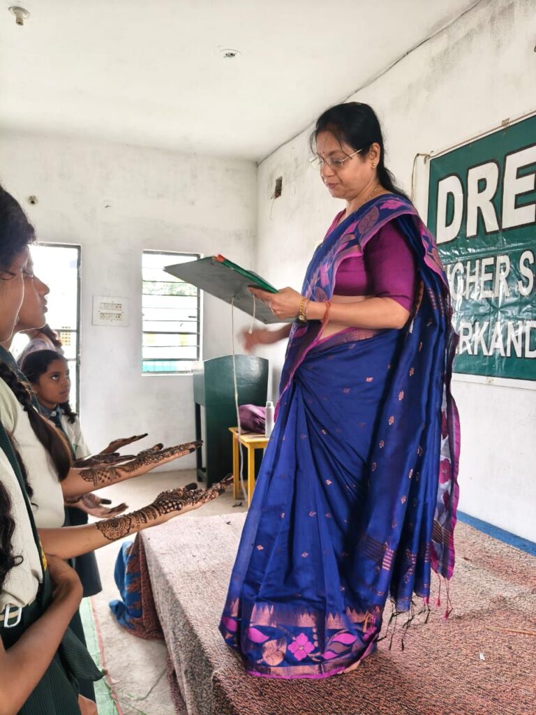 इस अवसर पर स्कूल प्रिंसीपल श्रीमती निवेदिता सरकार ने विद्यार्थियों को बताया कि सावन के महीने में मेहंदी लगाने की परंपरा न केवल सौंदर्य से जुड़ी है, बल्कि यह औषधीय गुणों से भरपूर होती है और शरीर को ठंडक प्रदान करती है। उन्होंने कहा कि मेहंदी सौभाग्य और समृद्धि का प्रतीक है।