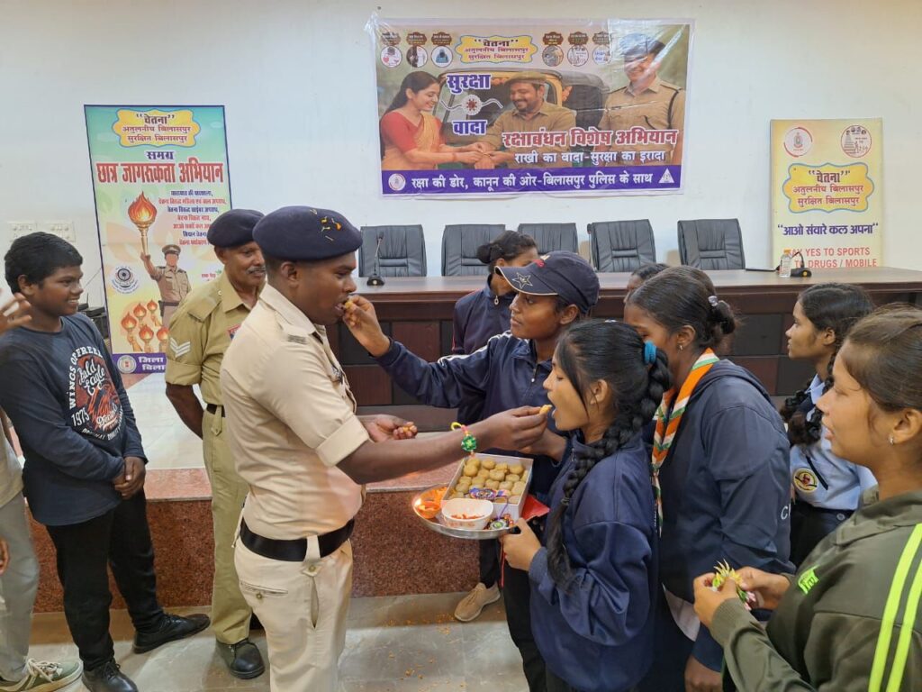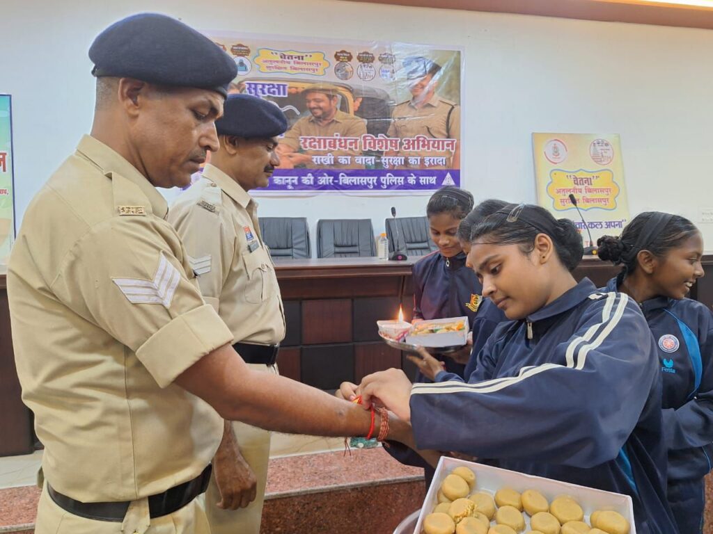 बिलासपुर-{जनहित न्यूज़} रक्षाबंधन के पावन अवसर पर बिलासपुर पुलिस ने “रक्षा का वादा सुरक्षा का इरादा” और “राखी की डोर क़ानून की ओर” थीम पर एक अनूठा और भावनात्मक कार्यक्रम आयोजित किया। इस मौके पर स्कूल-कॉलेज की छात्राओं ने पुलिस जवानों को राखी बांधकर उनसे सुरक्षा का संकल्प लिया, वहीं महिला पुलिसकर्मियों ने भी बच्चों को रक्षा सूत्र बांधकर उनकी हिफाज़त का वादा निभाने का संकल्प दोहराया।