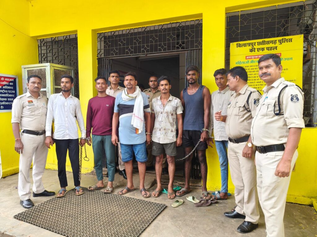 फिर आरोपियों की तलाश करके 1. राजीव वर्मा पिता स्वर्गीय संजय वर्मा उम्र 23 साल भूरी भाटा जलसों थाना कोनी जिला बिलासपुर 2. साहिल वर्मा पिता मूलचंद वर्मा उम्र 19 साल निवासी ग्राम जलसो थाना कोनी जिला बिलासपुर 3. लक्ष्मी प्रसाद केवट पिता रमेश केवट उम्र 19 साल भूरी भाटा जलसो थाना कोनी जिला बिलासपुर जलसो थाना कोनी जिला बिलासपुर 4. आनंद वर्मा पिता स्वर्गीय शिव प्रसाद उम्र 35 साल वर्मा ग्राम जलसो थाना कोनी जिला बिलासपुर 5. राजा वर्मा पिता भागवत वर्मा उम्र 25 साल निवासी वर्मा मोहल्ला ग्राम बिरकोना थाना कोनी बिलासपुर 6. राजेंद्र वर्मा पिता झड़ी वर्मा उम्र 23 साल निवासी वर्मा मोहल्ला ग्राम बिरकोना थाना कोनी बिलासपुर एवं